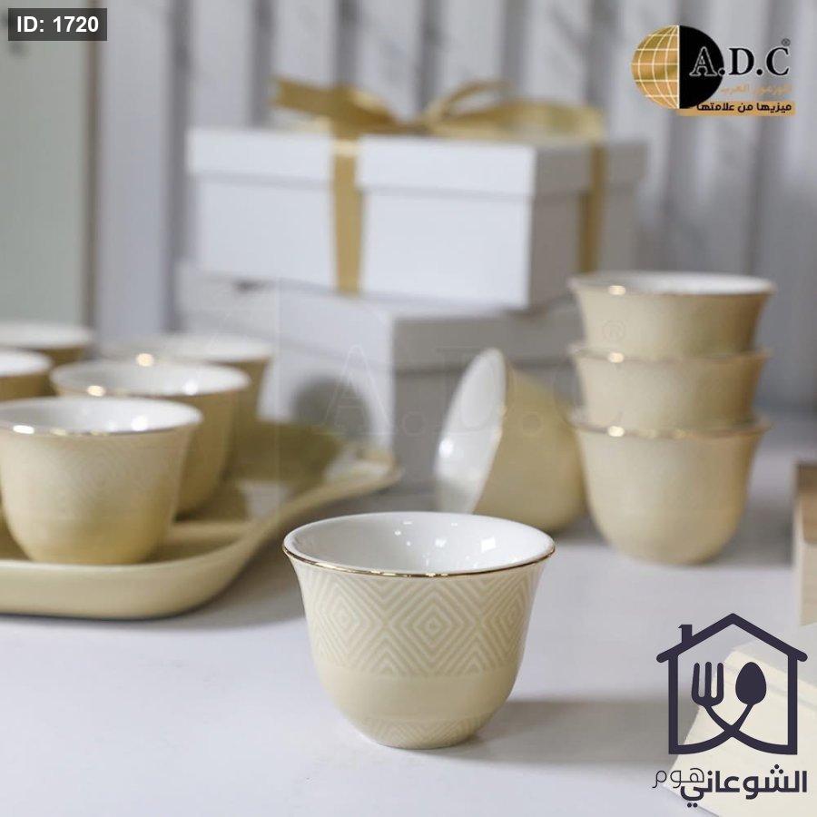 طقم فناجين سادة بيج 12 فنجان حز ذهبي