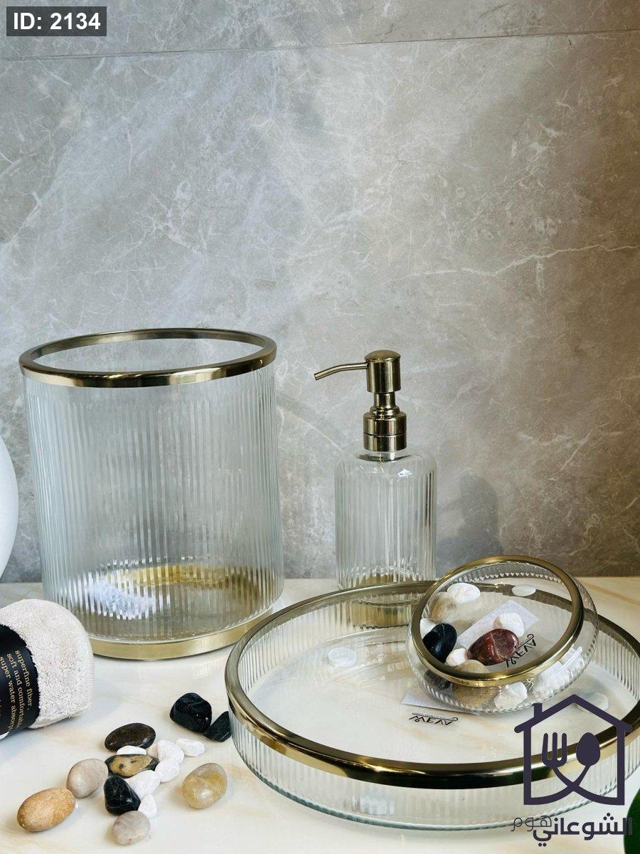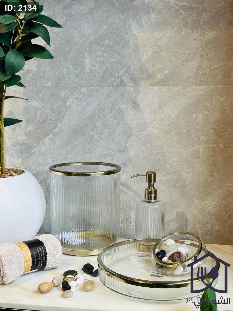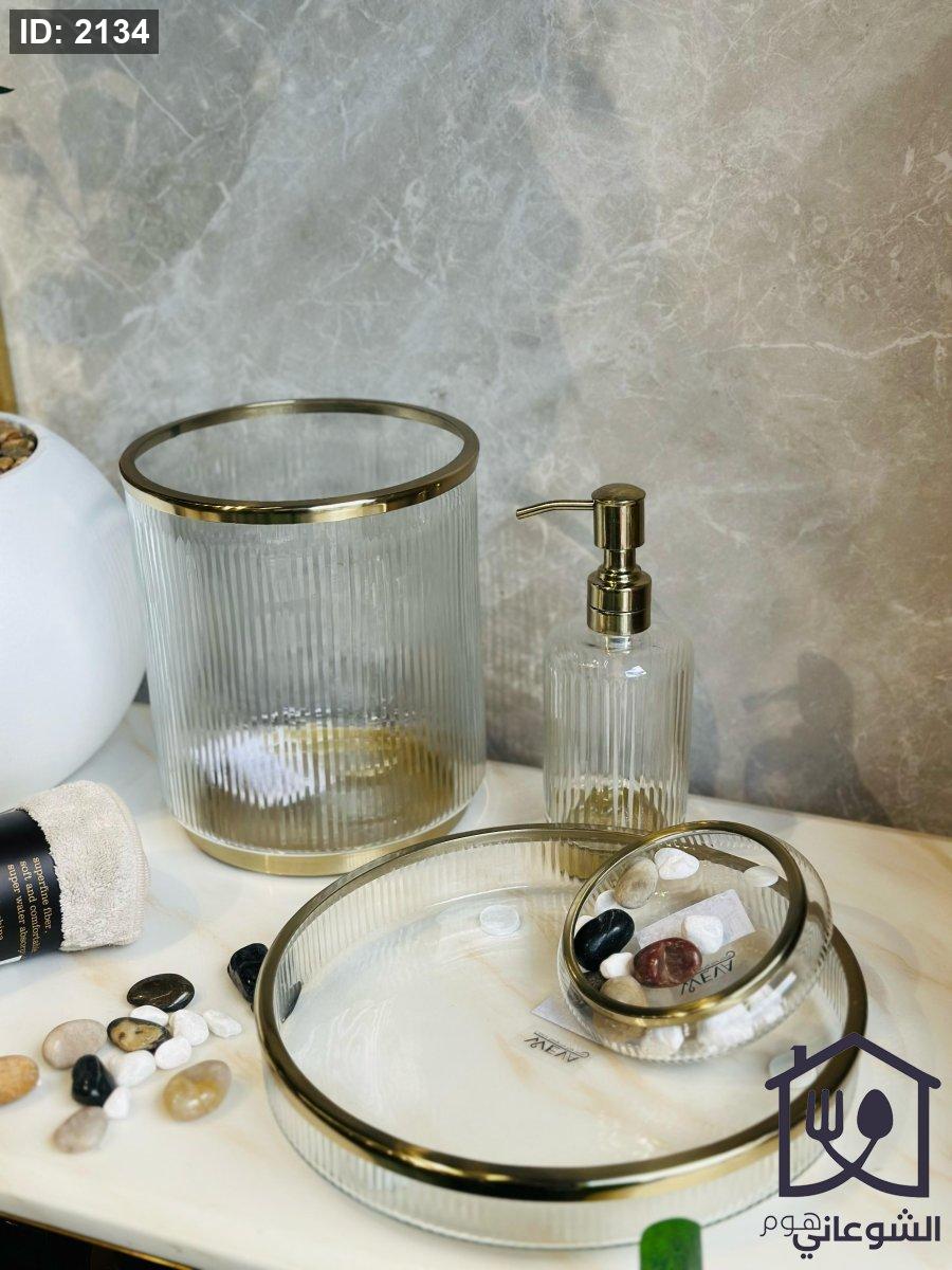 طقم حمام زجاج هندي ثقيل 4 قطع إطار ذهبي (WEVA)PURE