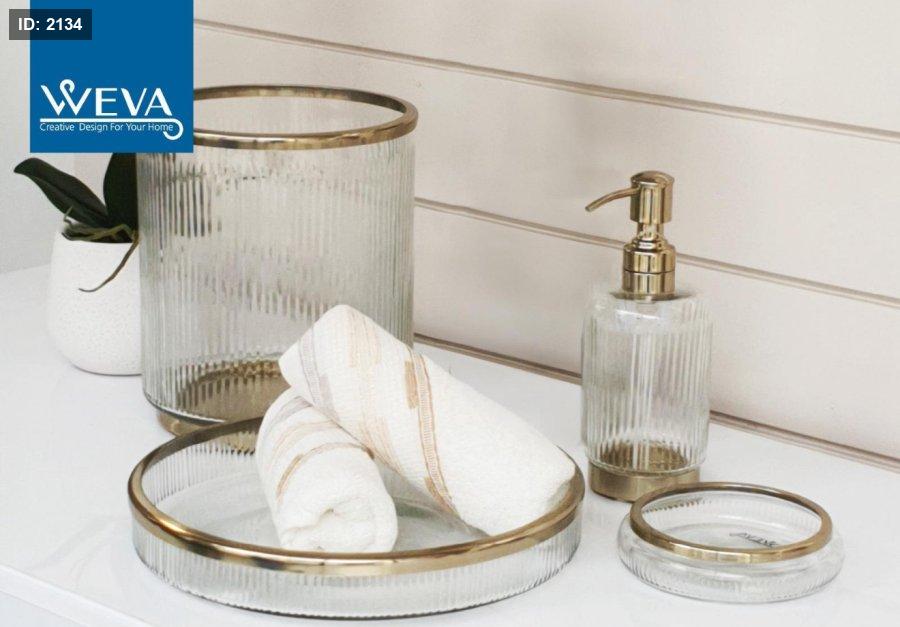 طقم حمام زجاج ثقيل 4 قطع إطار ذهبي (WEVA)PURE