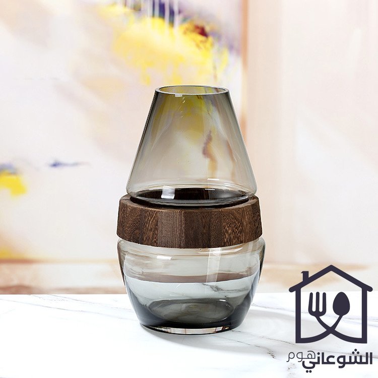 فازا زجاج اسود اطار خشبي غامق