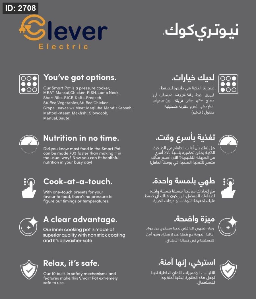 NutriCook هي علامة متخصصة بالطبخ الذكي والتغذية الصحية، مدعومة بجودة واعتمادية Clever Electric.