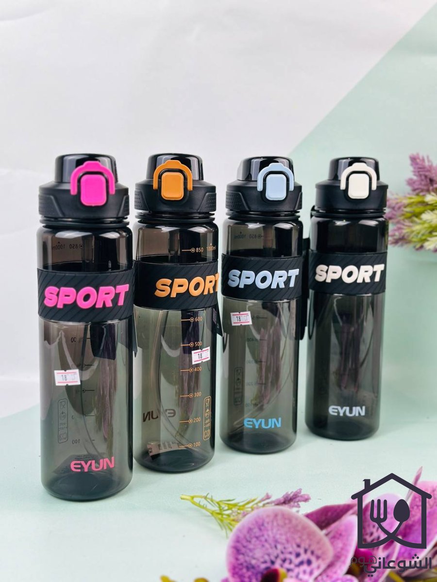 مطرة ماء بلاستيك مع غطاء و مصاصة محكمة بالوان عشوائية SPORT