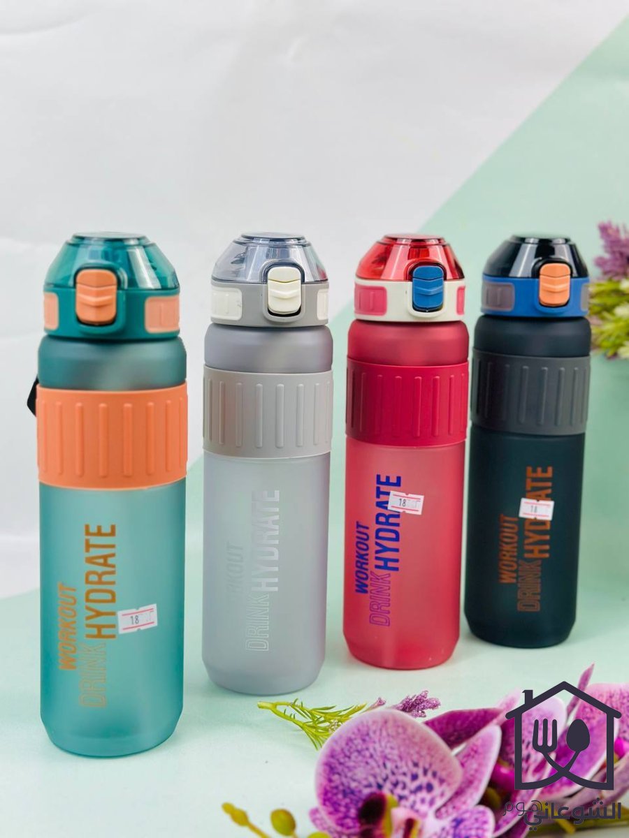 مطرة ماء بلاستيك مع غطاء و مصاصة محكمة بالوان عشوائية SPORT