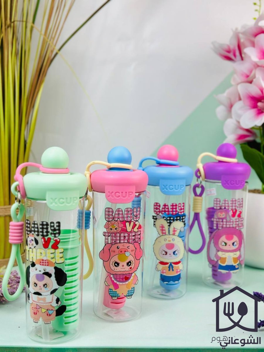 مطرة ماء بلاستيك مع غطاء و مصاصة محكمة رسومات بالوان عشوائية
