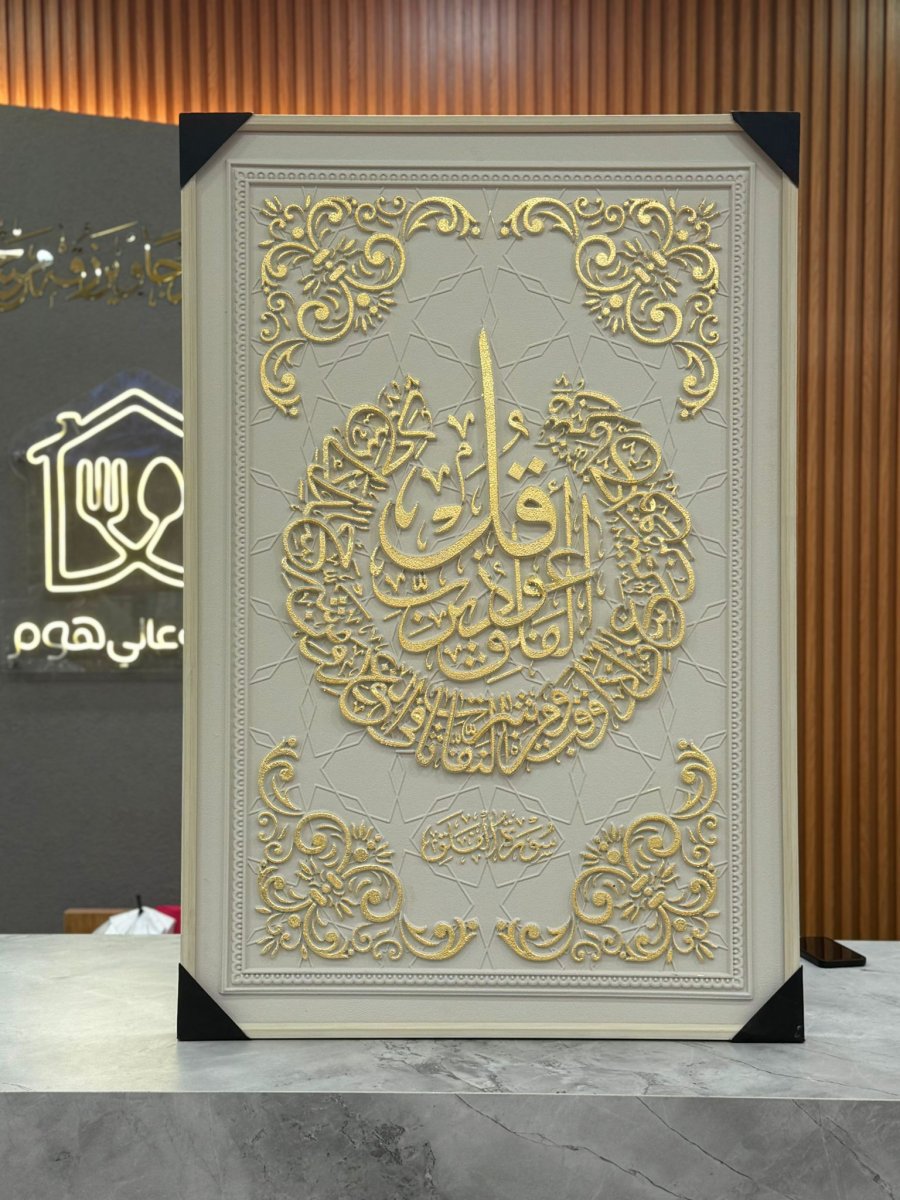 لوحة - برواز ايات قرآنية ، برواز خشب 80*128 سم سورة الفلق ((قُلْ أَعُوذُ بِرَبِّ الْفَلَقِ))