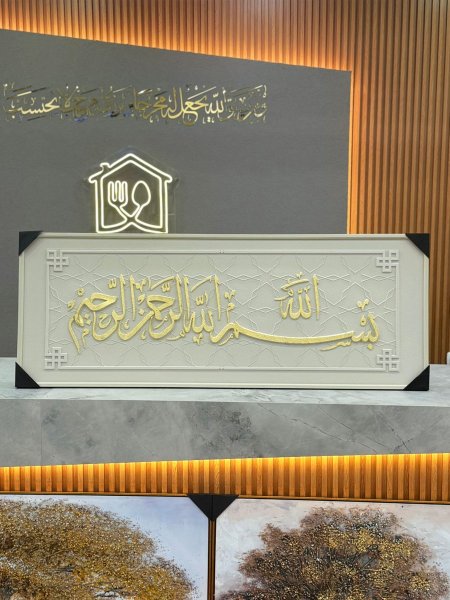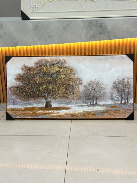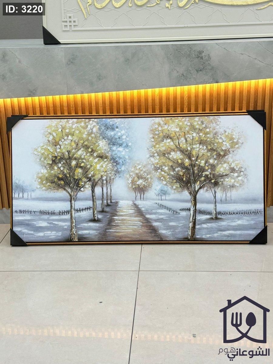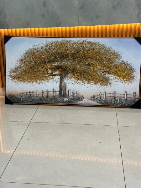لوحة خشب - برواز شجرة، ذهبي و ابيض، اطار ذهبي، تفاصيل بارزة مقاس 60*140سم