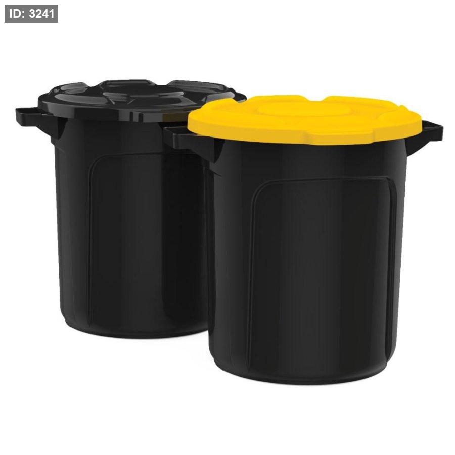 سلة مهملات - صندوق بلاستيك حجم كبير 70 لتر مع غطاء بلاستيك قوية لون اصفر مع يدين