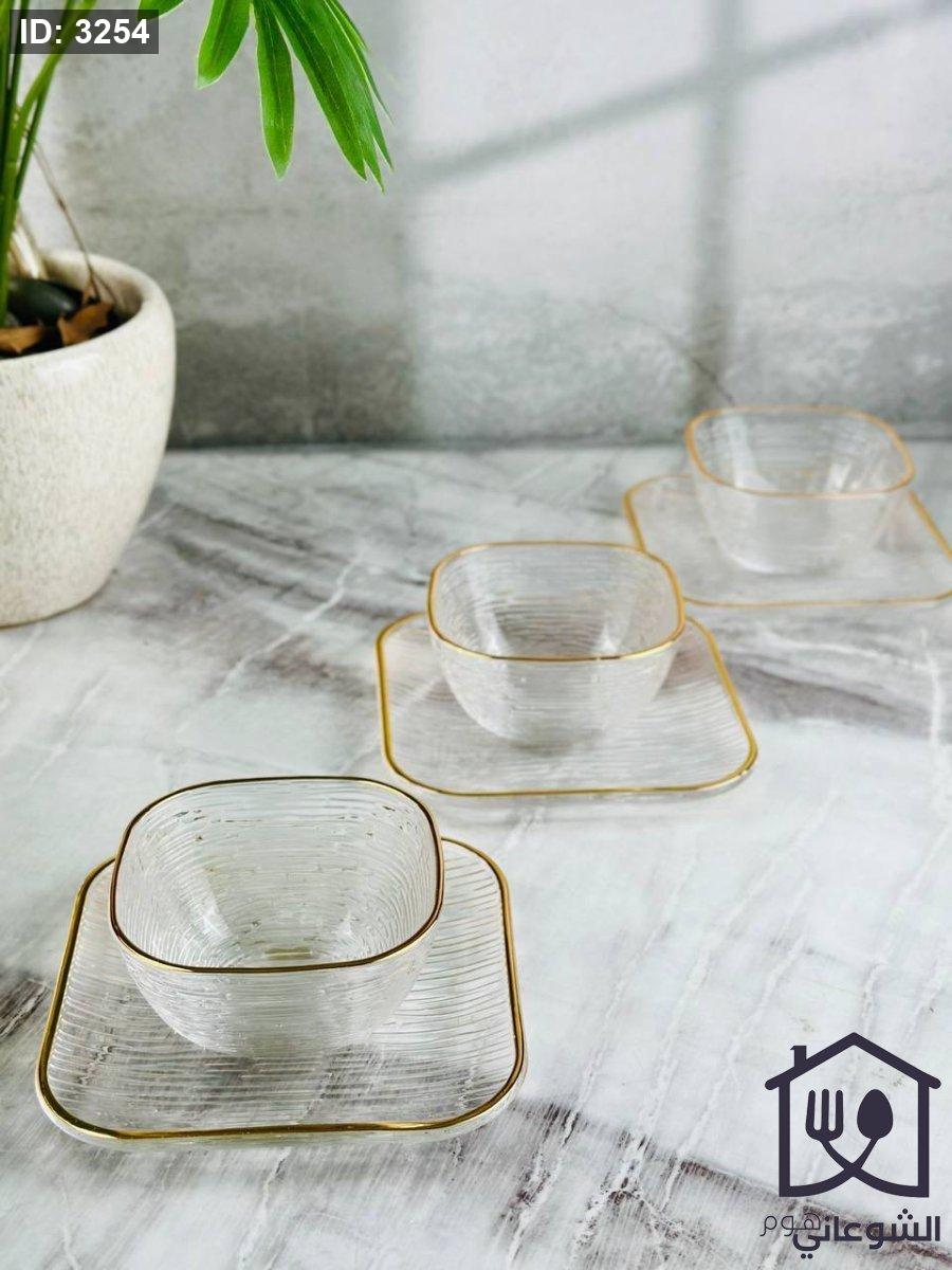 طقم 6 زبادي مكسرات مع 6 صحون حز ذهبي
