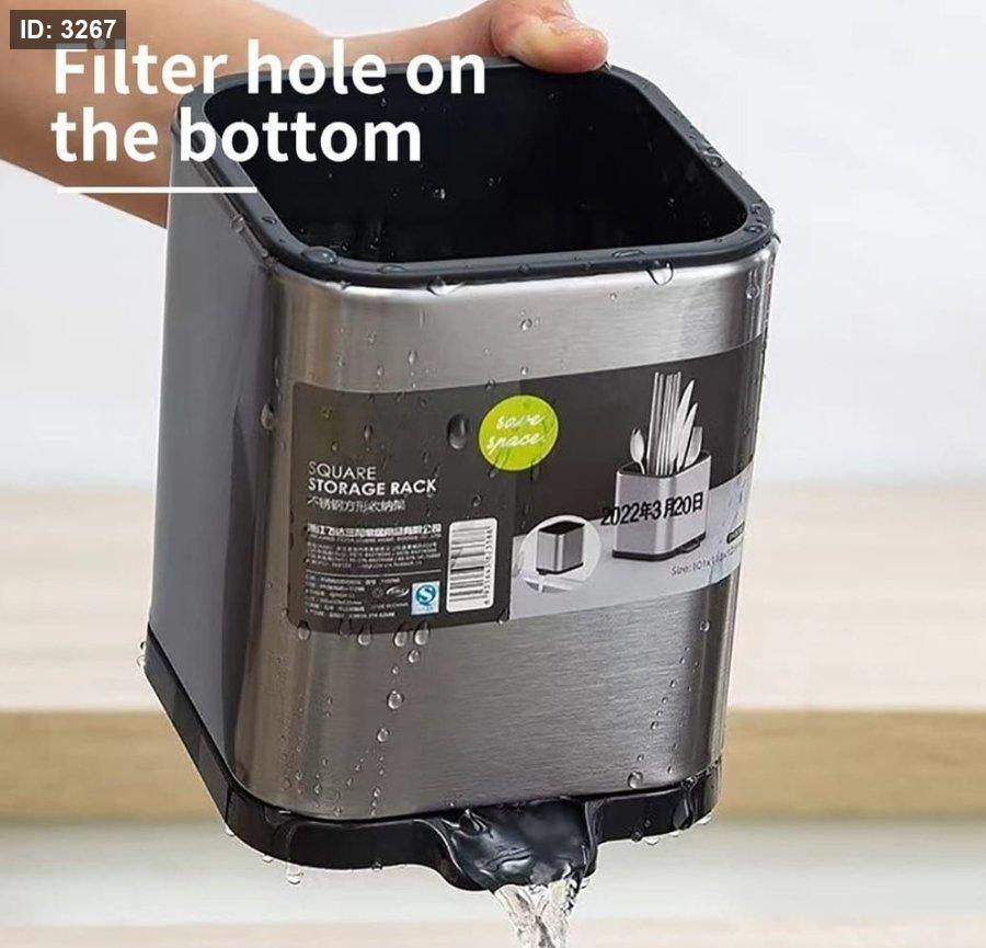 حمالة ، علبة معالق ستانليس شكل مربع مع مصفاة لتصريف الماء