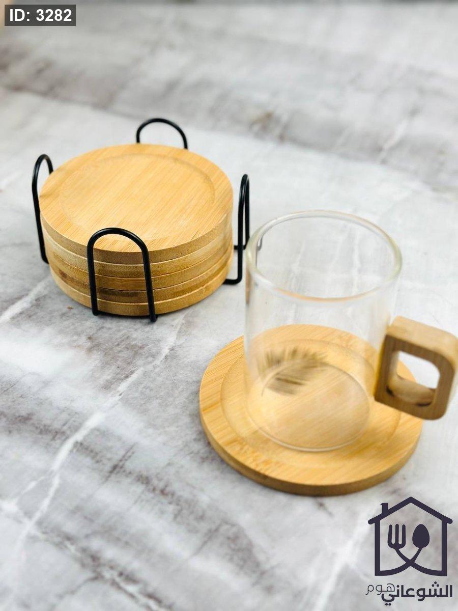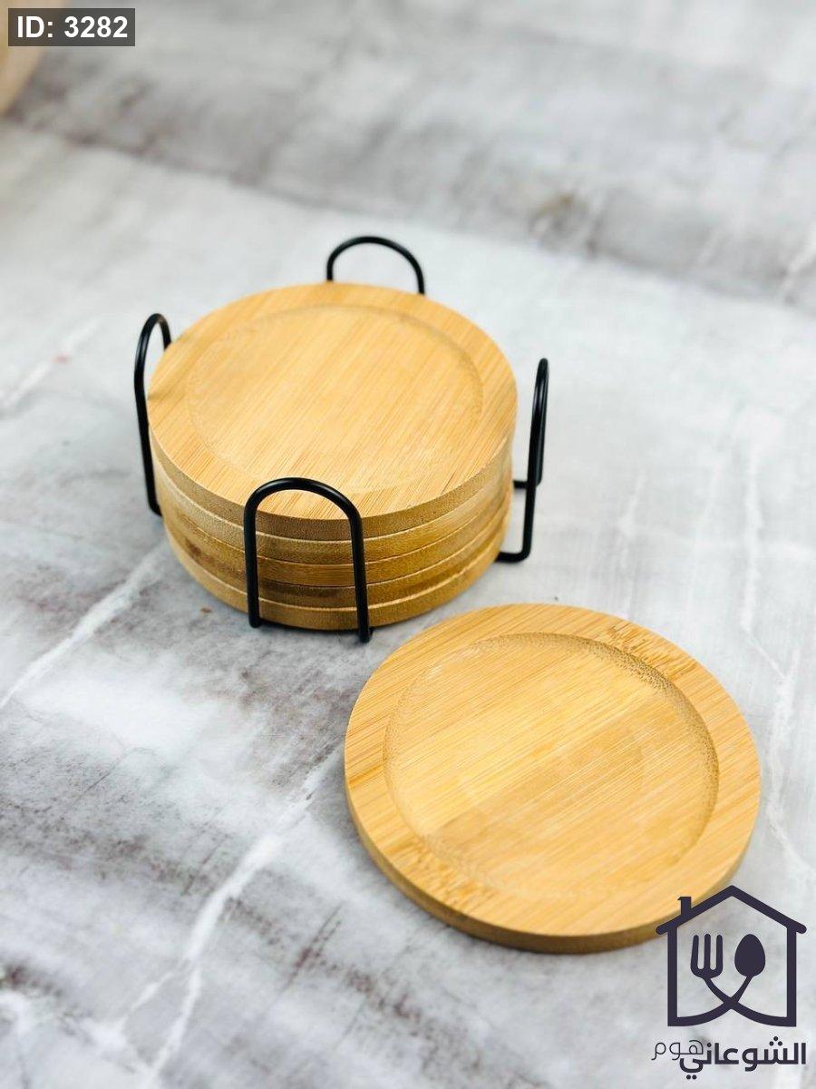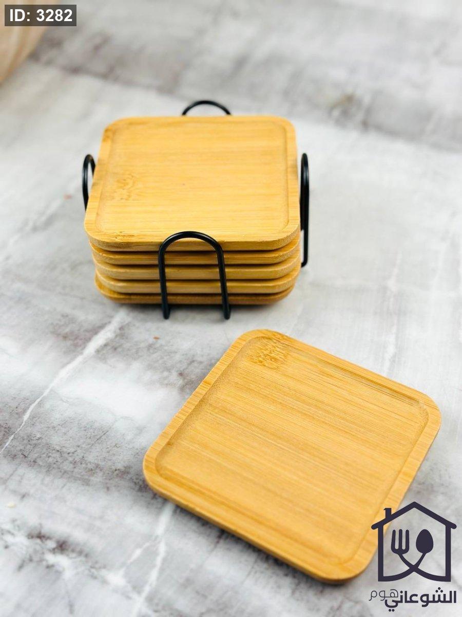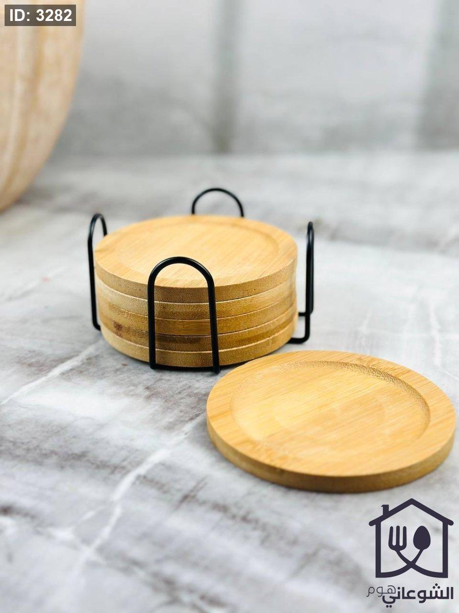 طقم كوسترات خشب مع ستاند معدن