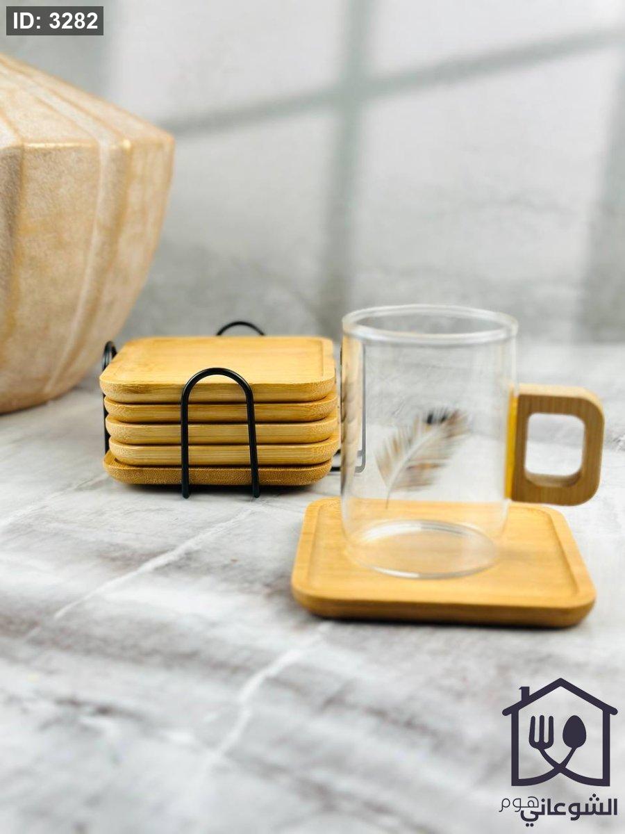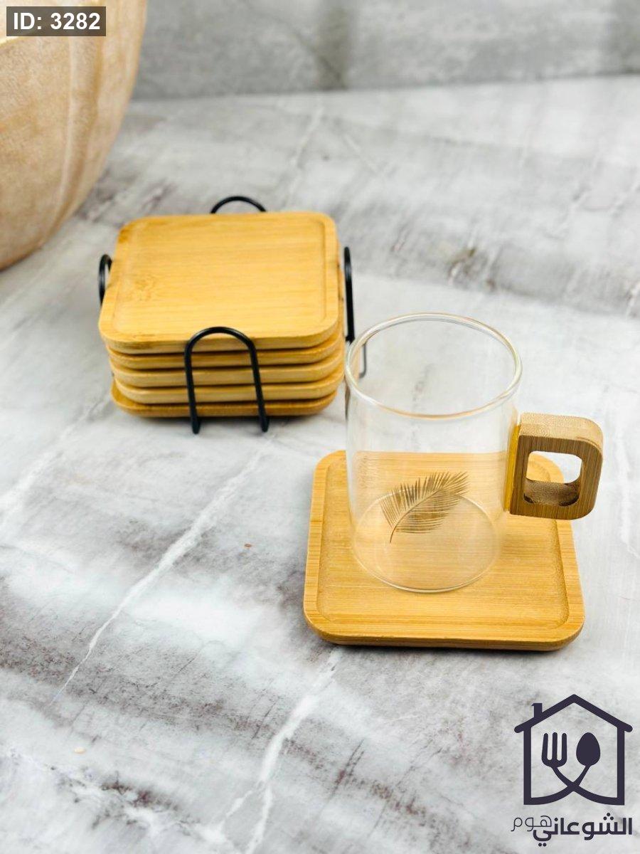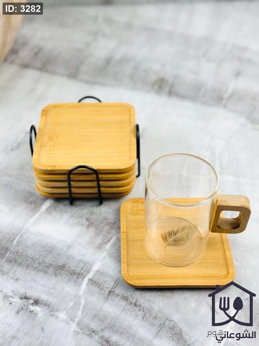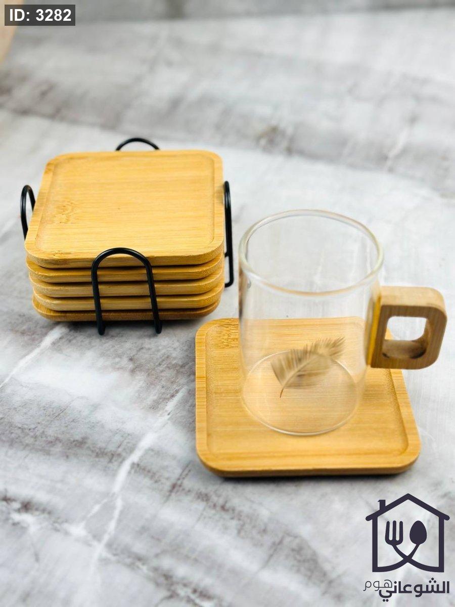 طقم كوسترات خشب مع ستاند معدن