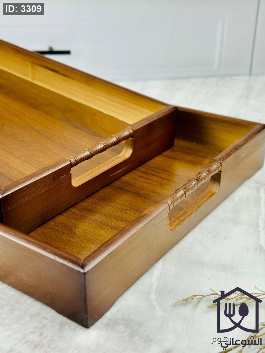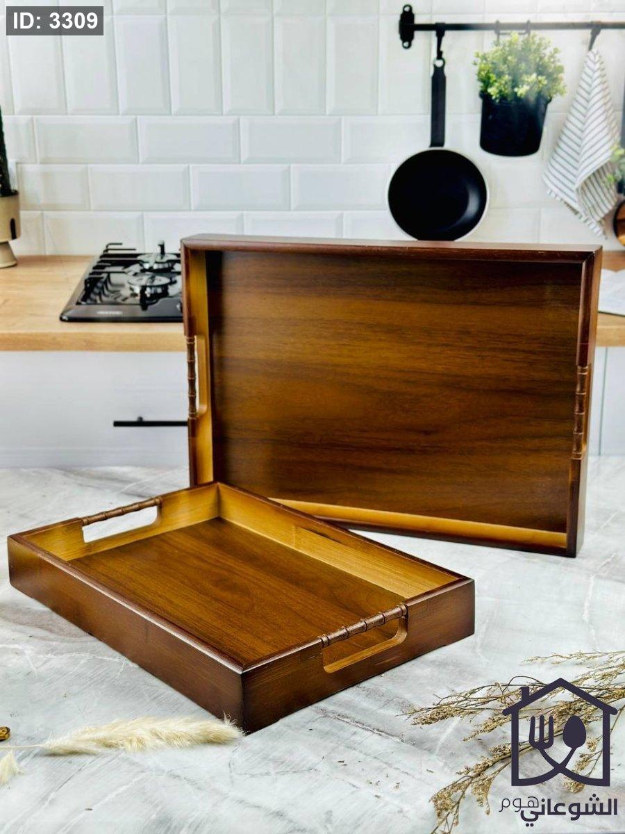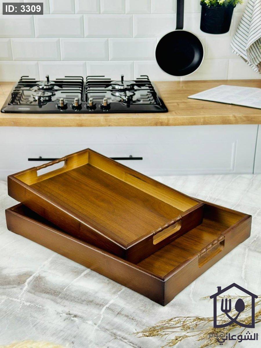 طقم صواني تقديم خشب غامق مستطيل مع يدين