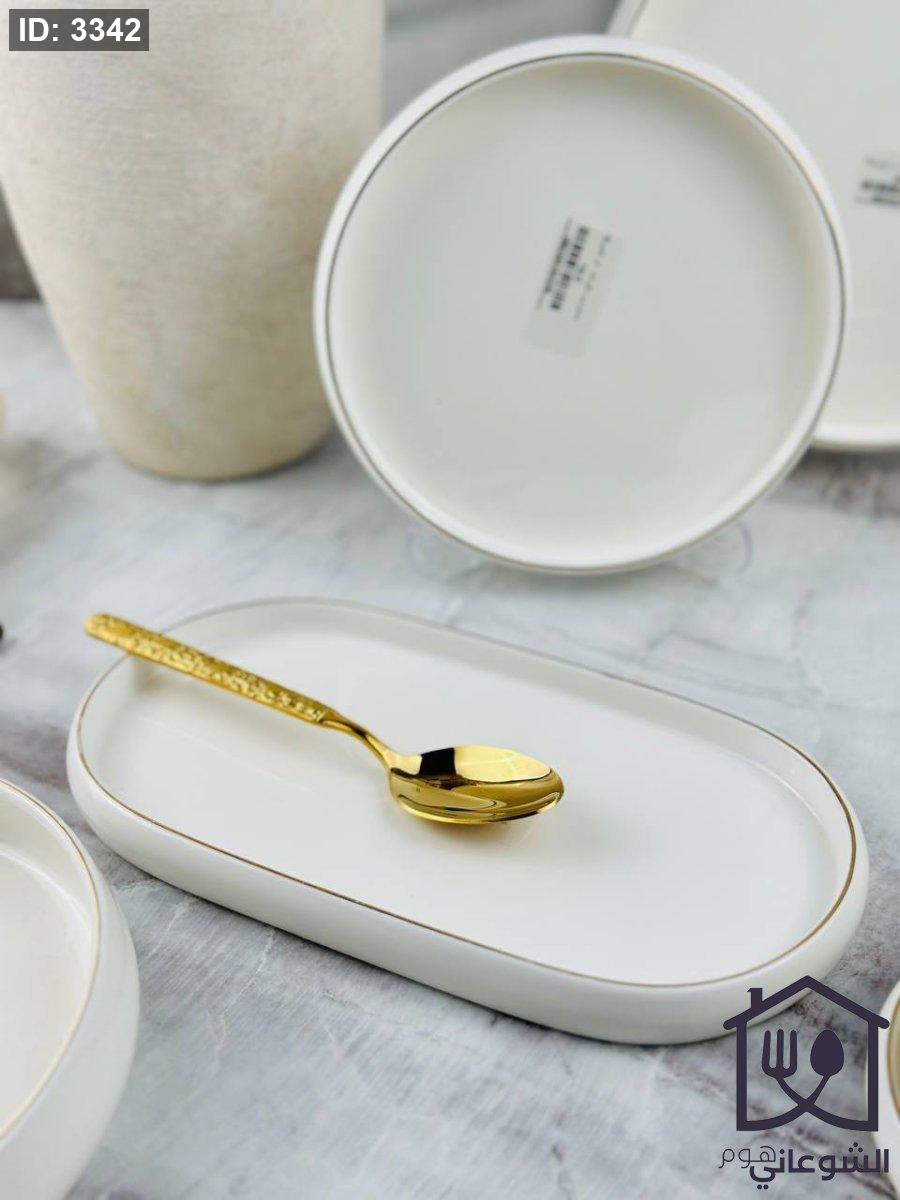 صحن بورسلان بيج بيضاوي لف مسطح حز ذهبي