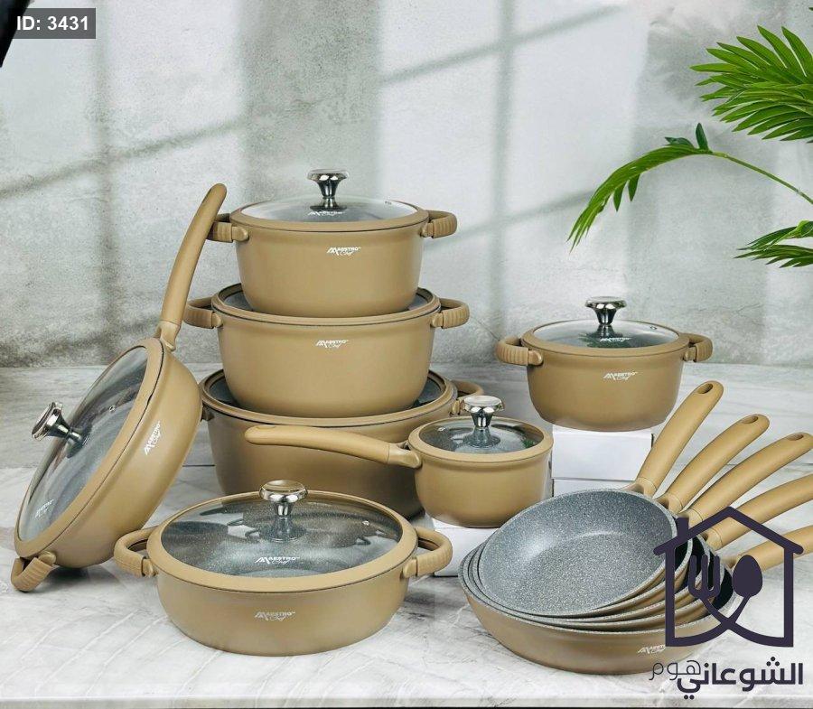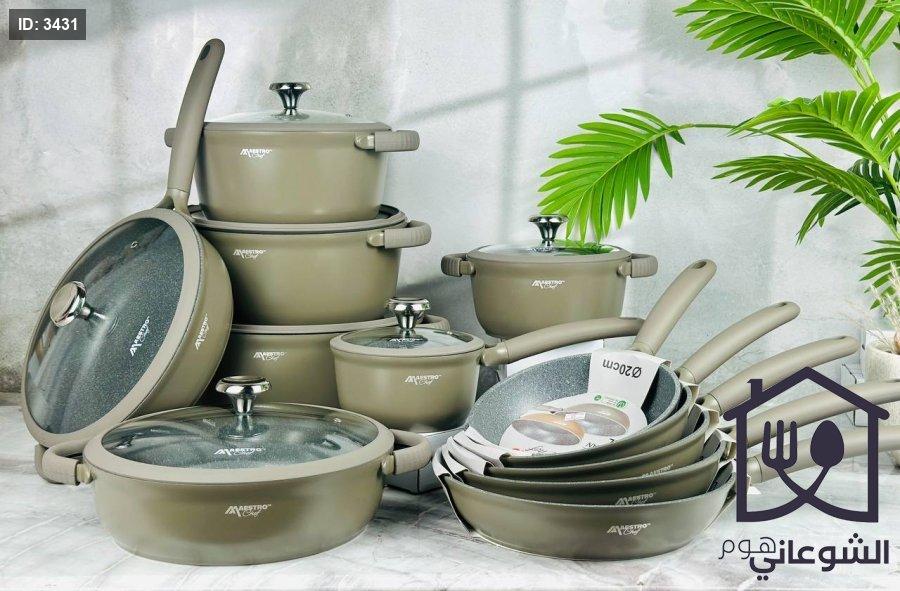 طقم MaestroChef يجمع بين التصميم العصري والأداء العالي. مصنوع من الألمنيوم السميك المصبوب (سكب) لتوزيع متوازن للحرارة ومتانة تدوم لسنوات.