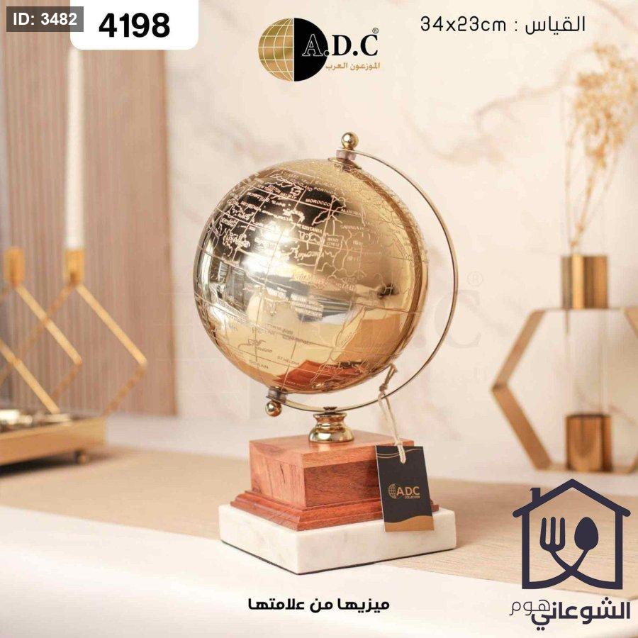 تحفة ديكور قاعد رخام مع خشب هندي شكل كرة ارضية ذهبي