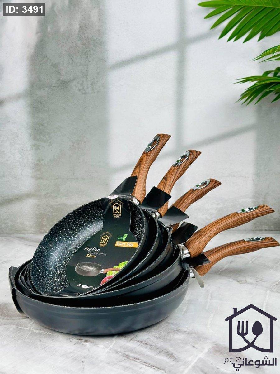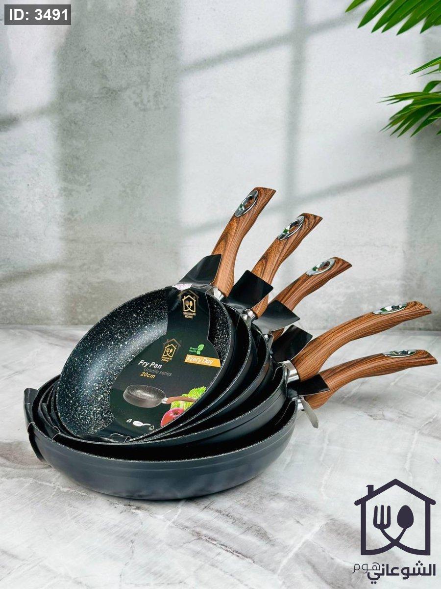 طقم 5 قلايات جرانيت يد خشبي شوعاني