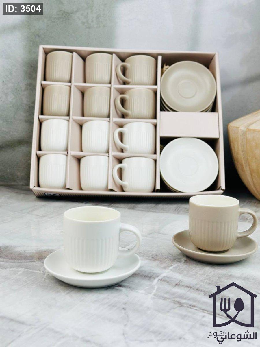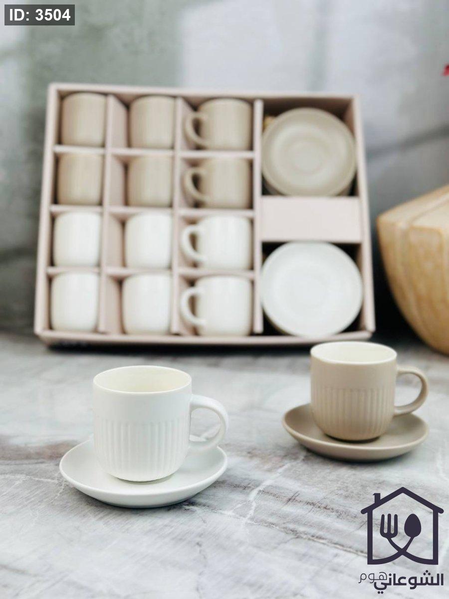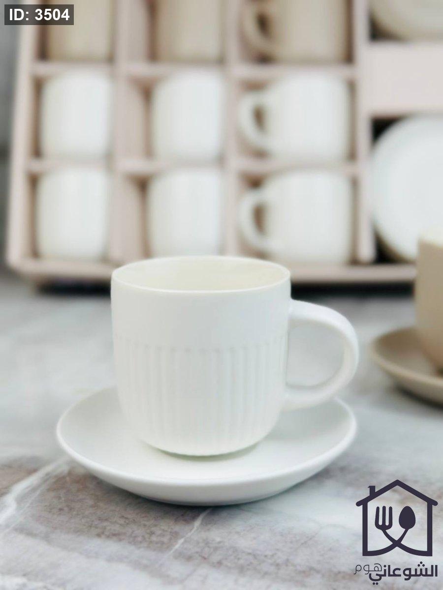 طقم فناجين 12+12 مع صحون محزز سادة مع يد