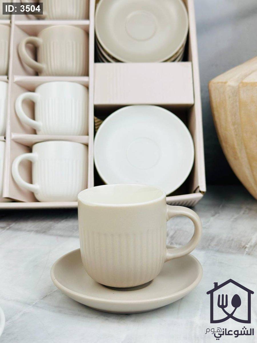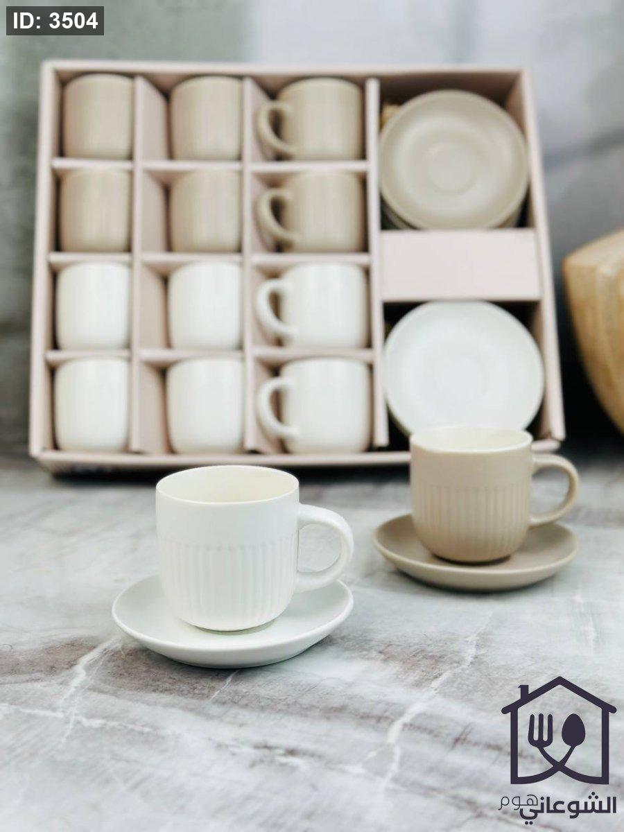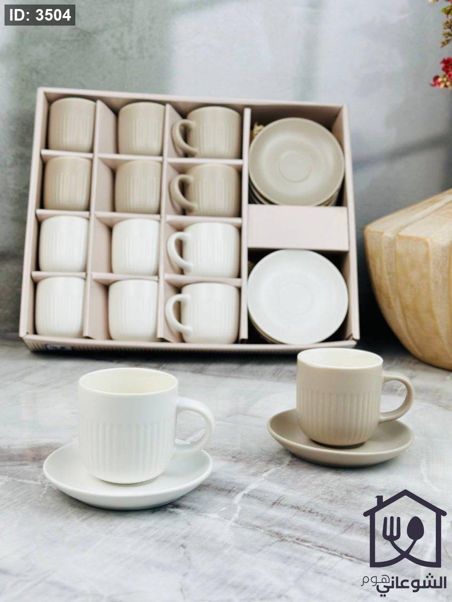 طقم فناجين 12+12 مع صحون محزز سادة مع يد