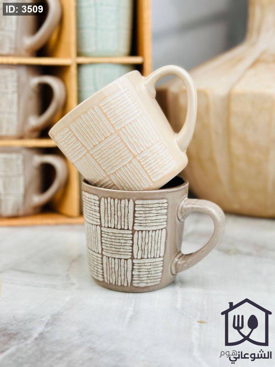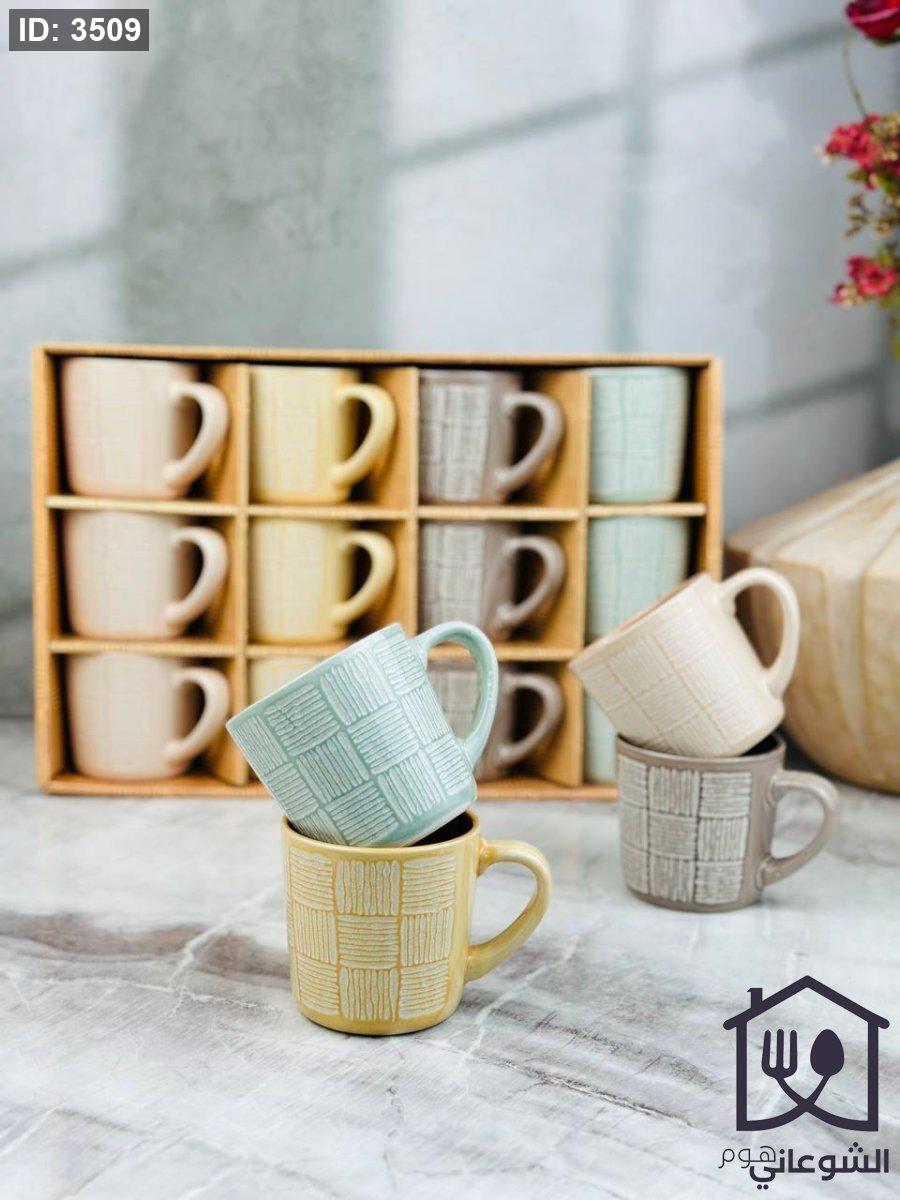 طقم مجات سيراميك ملون مع يد 12 قطعة