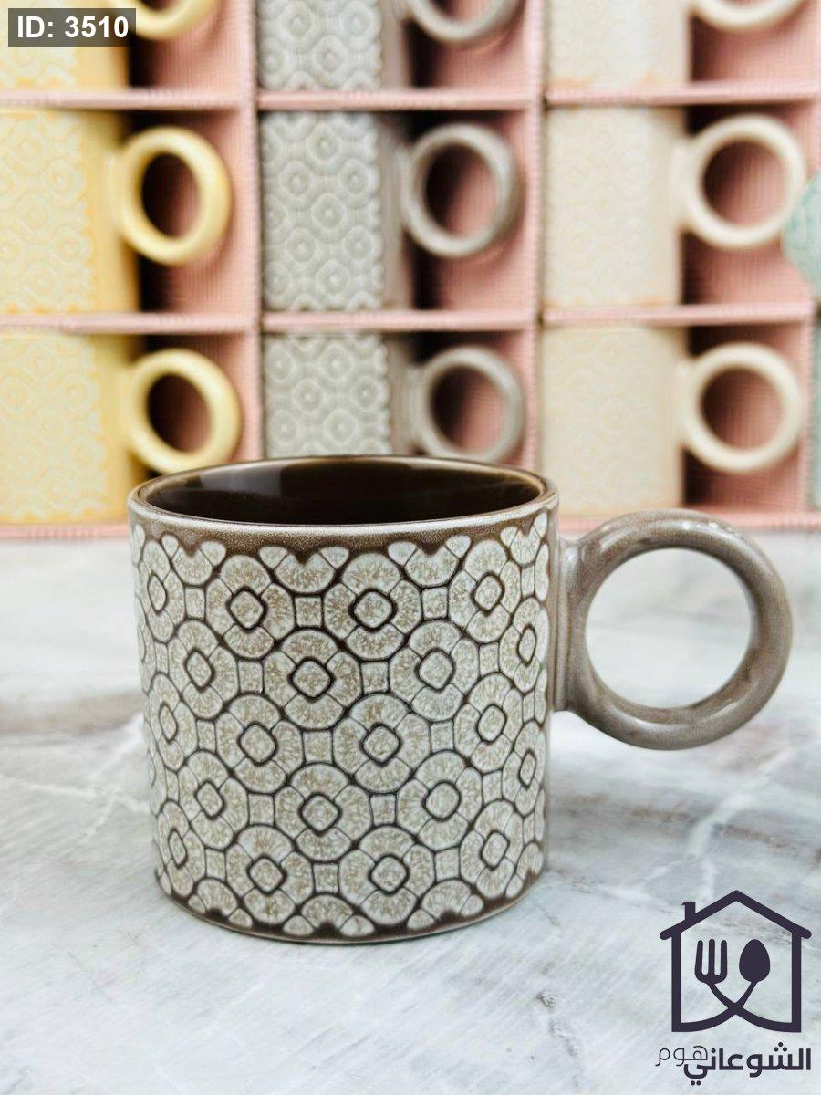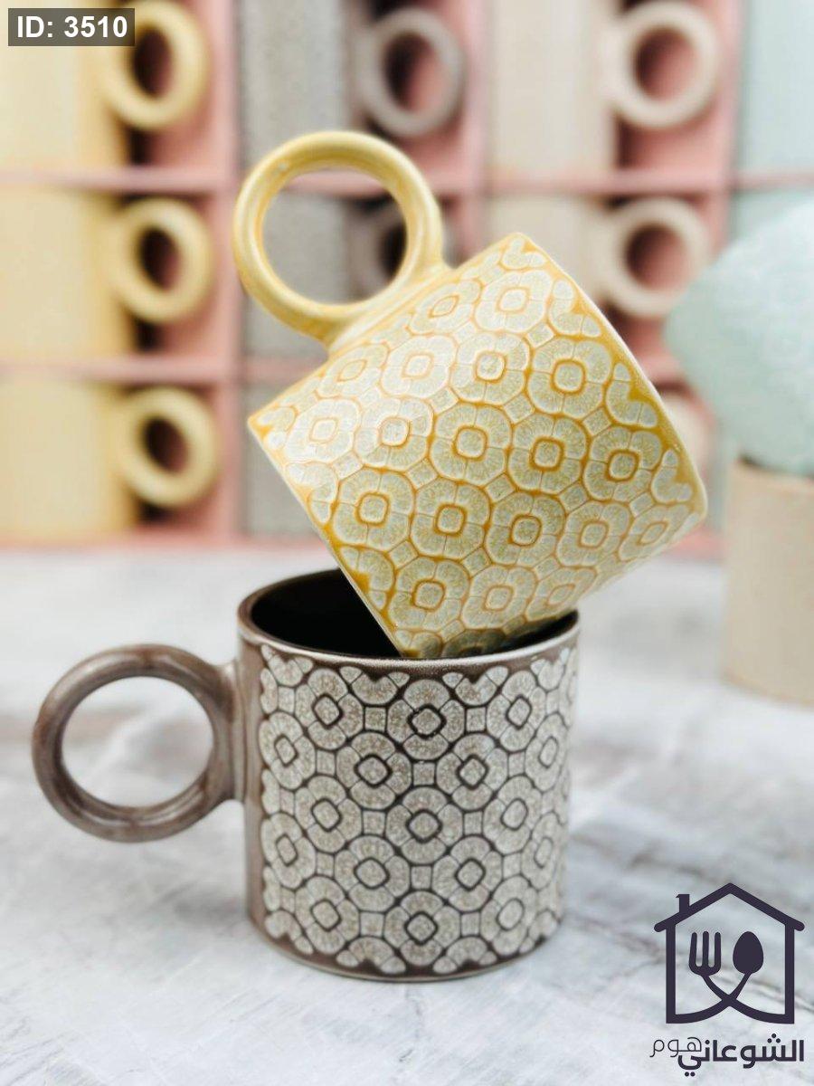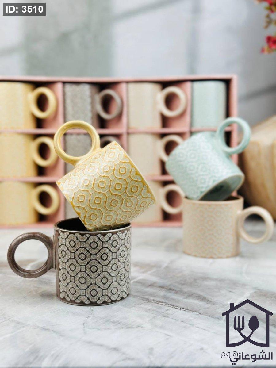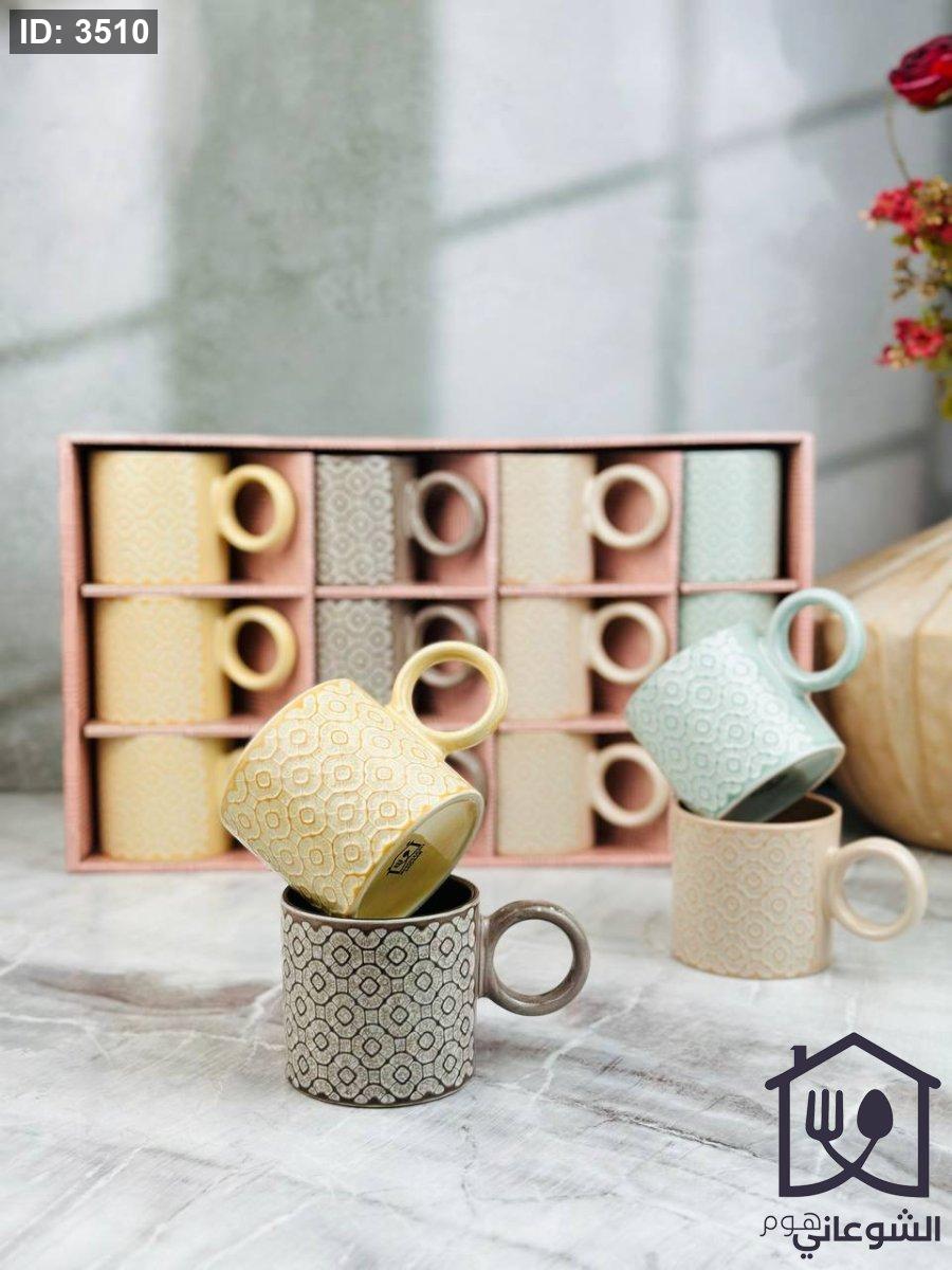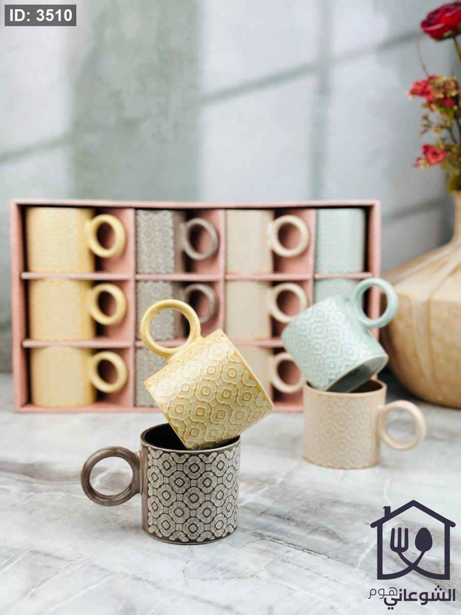 طقم مجات سيراميك ملون مع يد 12 قطعة
