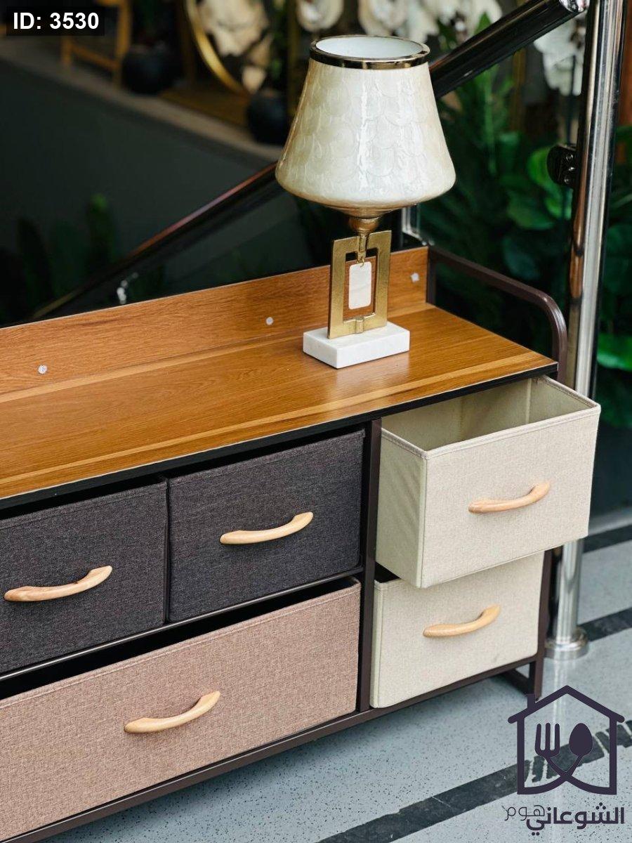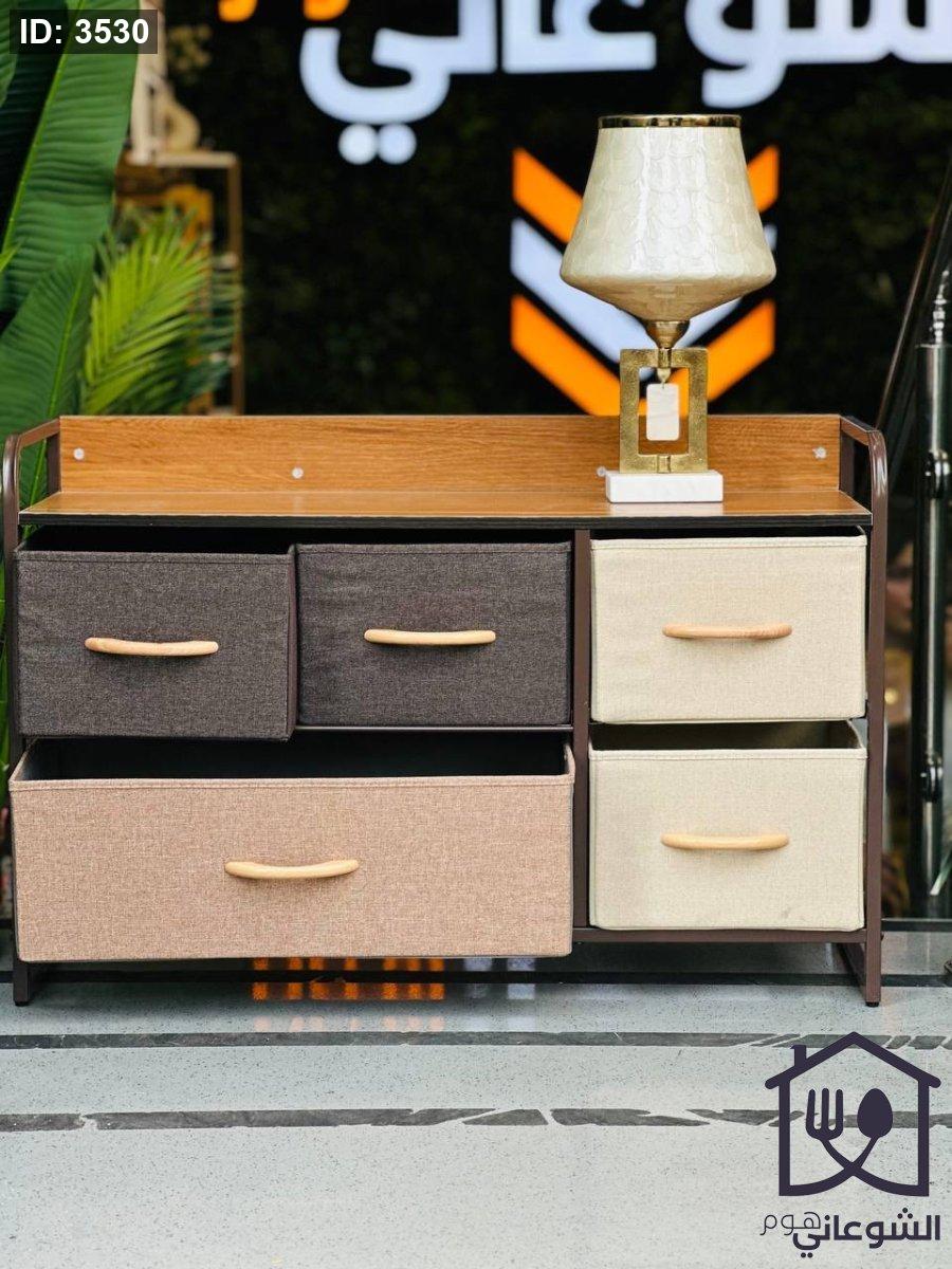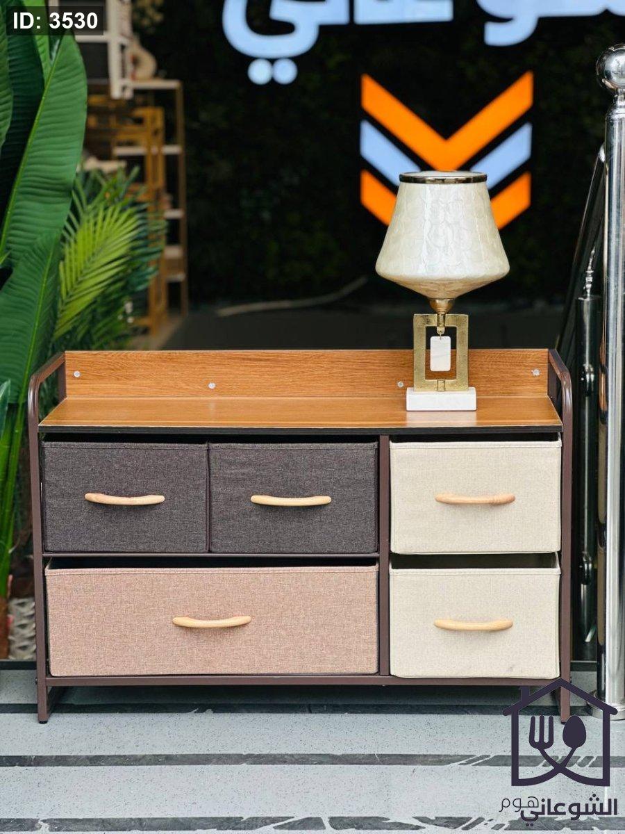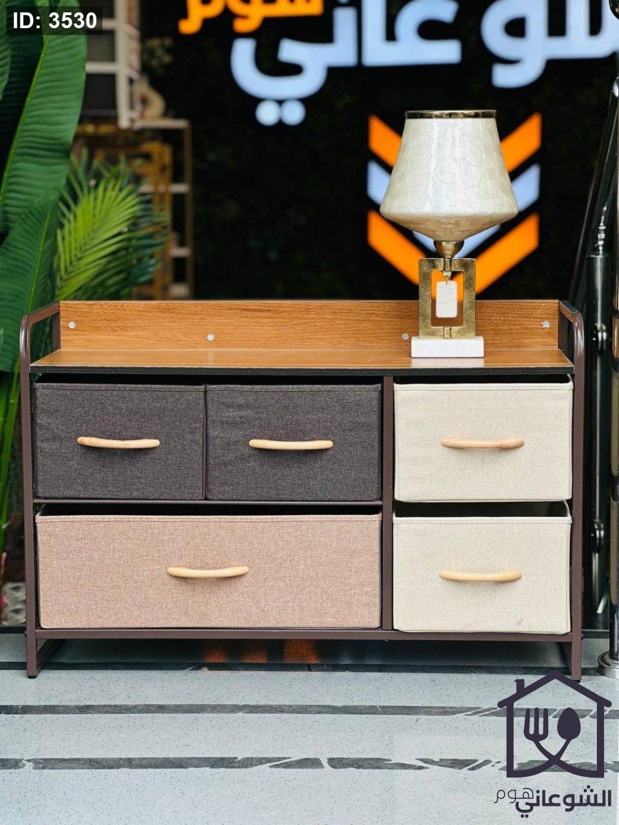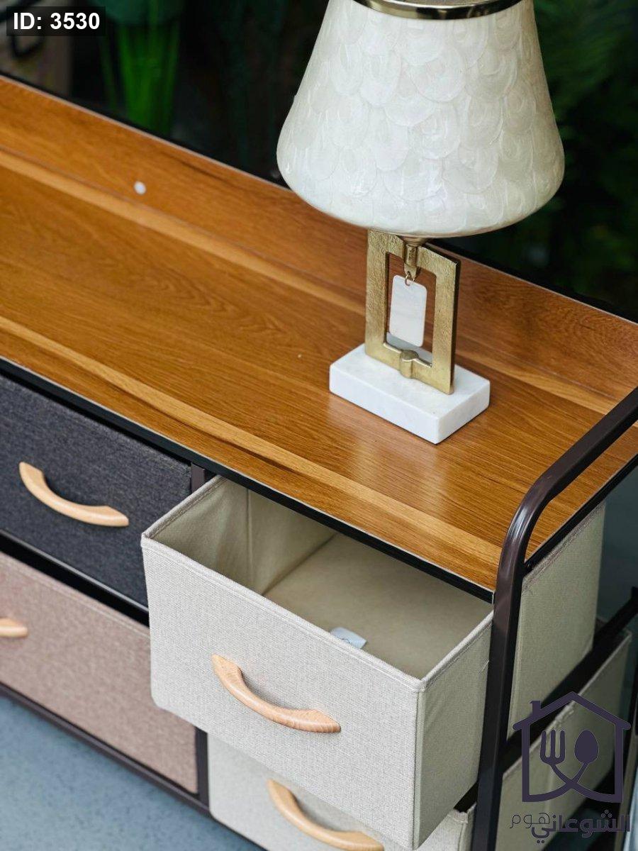 خزانة معدن طبقتين 4 جوارير قماش مع رف خشب (88x30x59CM)
