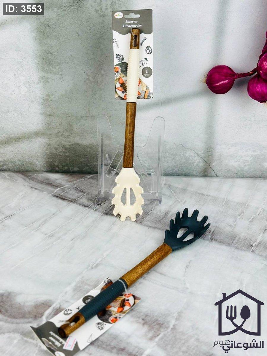 مغرفة سيليكون يد خشب غامق اطار سيليكون معكرونة