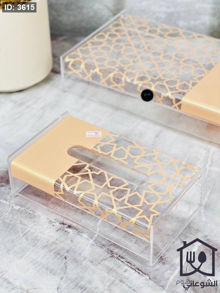 علبة محارم اكروليك شفاف مع غطاء نص بيج نص مرسم 25x15CM