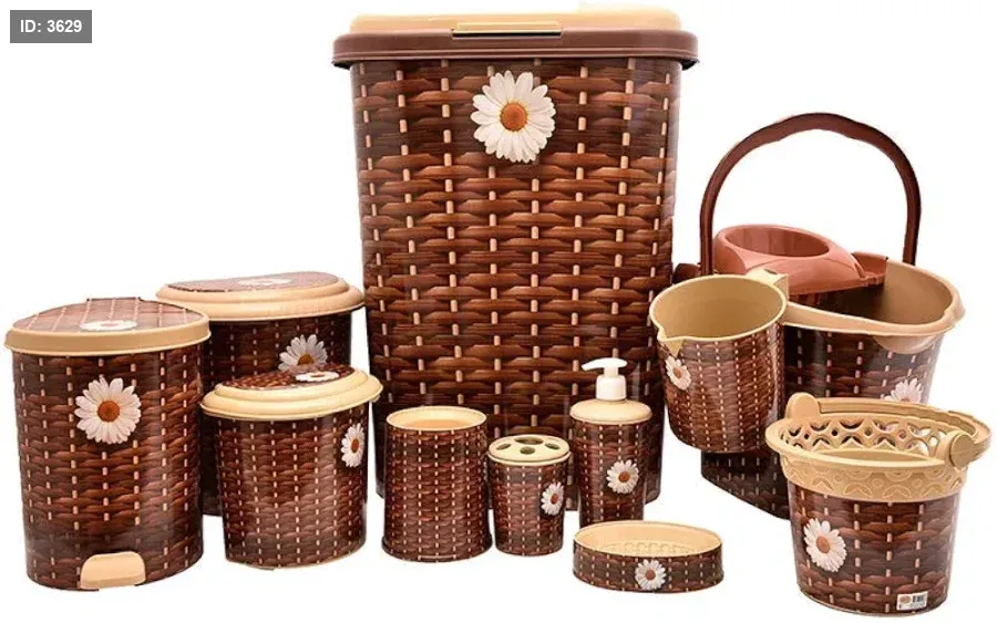 طقم حمام مكون من 10 قطعة بلاستيك ، لون بني
