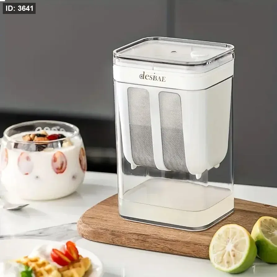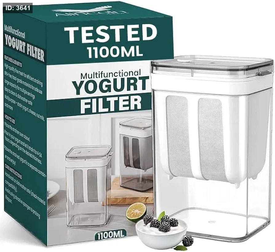مصفاة اللبن،تبروير، قالب، مصفاة متعددة الاستخدامات لصنع اللبن بسعة 1100 مل / 1800 مل مع كيس شبكي دقيق وغطاء (1100 مل/ 1800 مل)