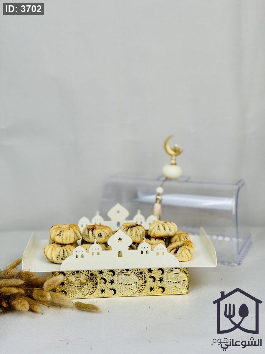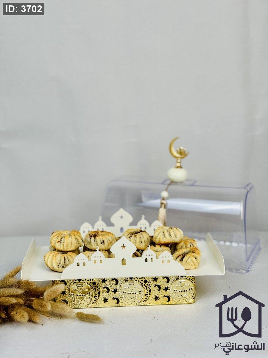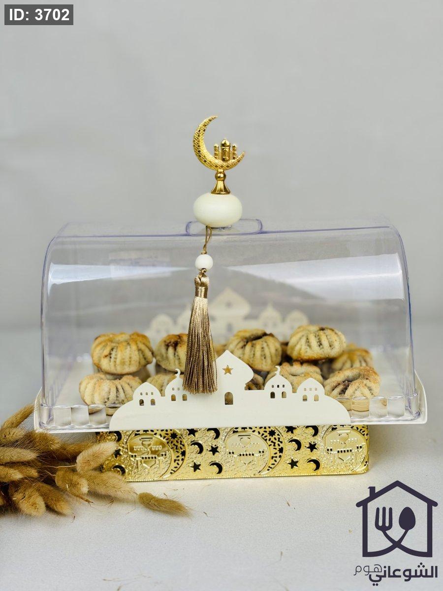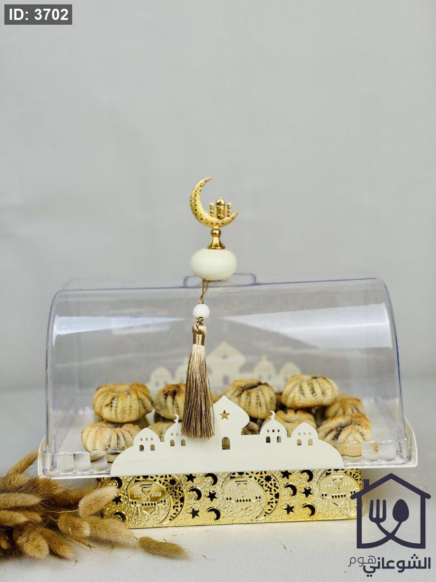 مضيفة معمول ذهبي بيج مستطيل رمضان قاعدة معدن غطاء اكروليك مع هلال