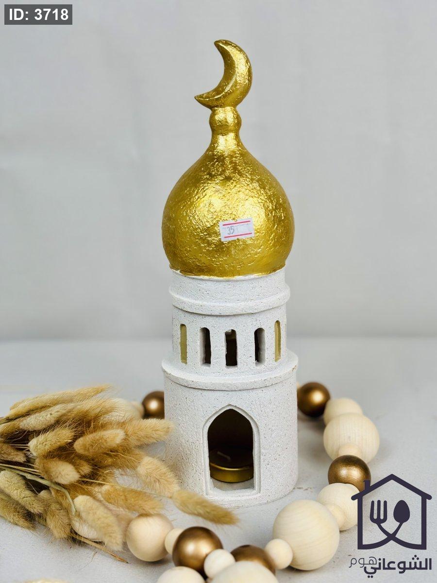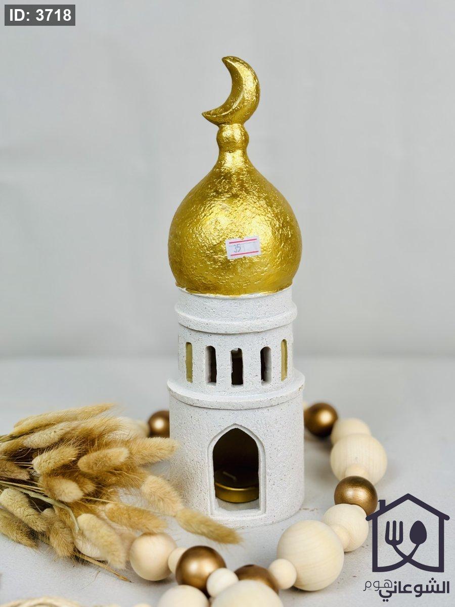 فانوس شكل مسجد بيج قبة ذهبي مع شمعة