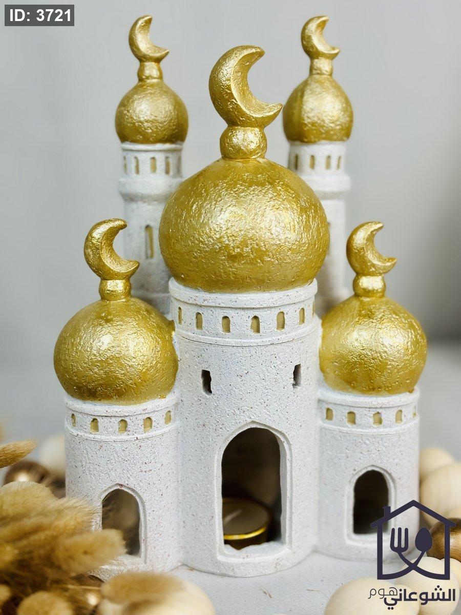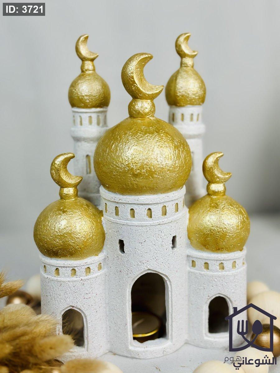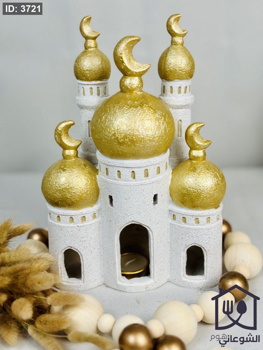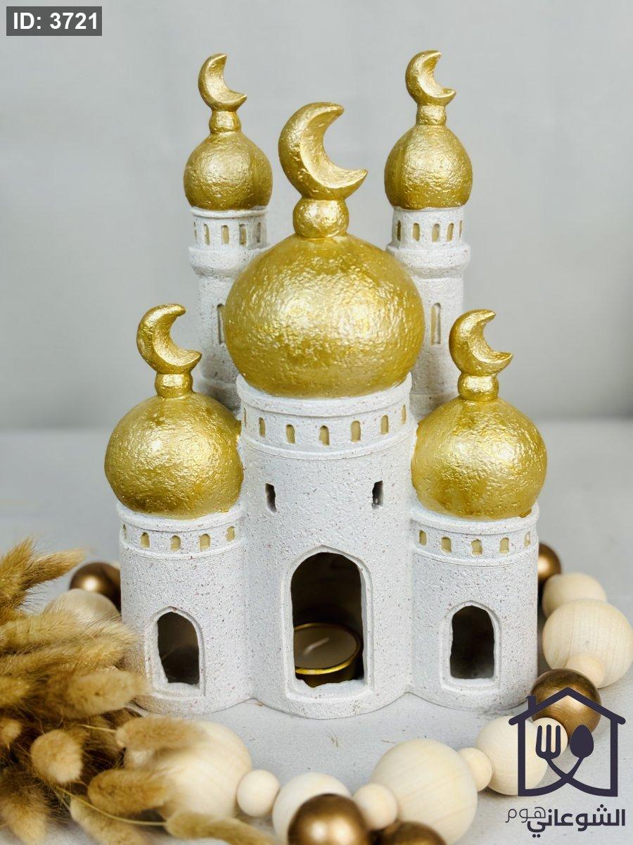 فانوس شكل مسجد بيج قبة ذهبي مع شمعة كبير رمضان