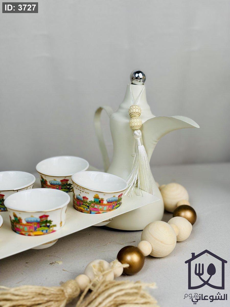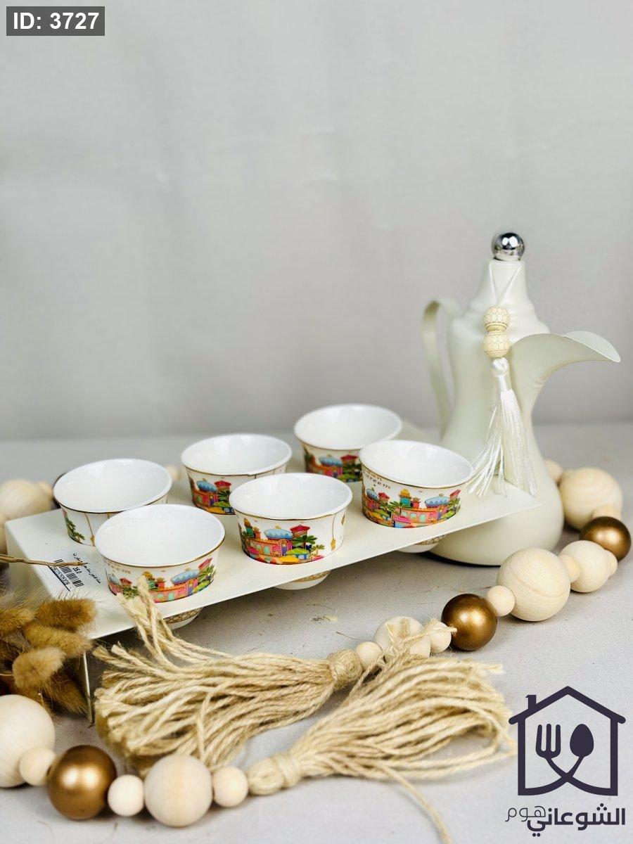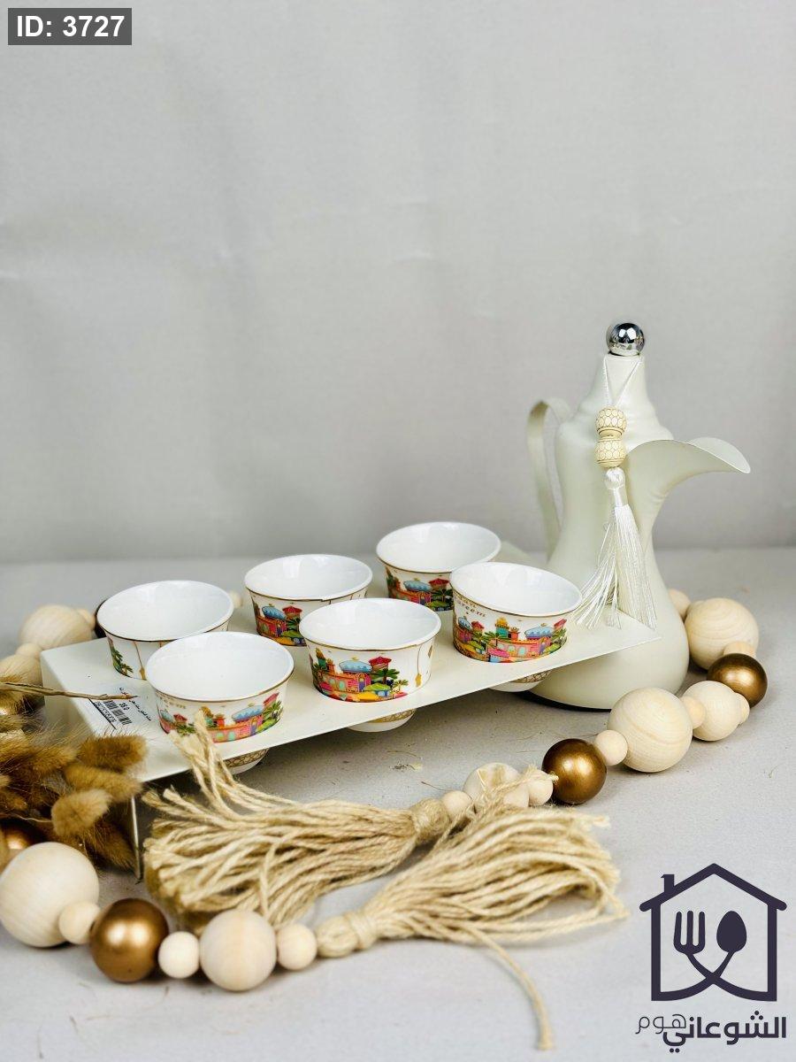 قاعدة فناجين سادة معدن مع يد شكل دلة قهوة 6 خانات