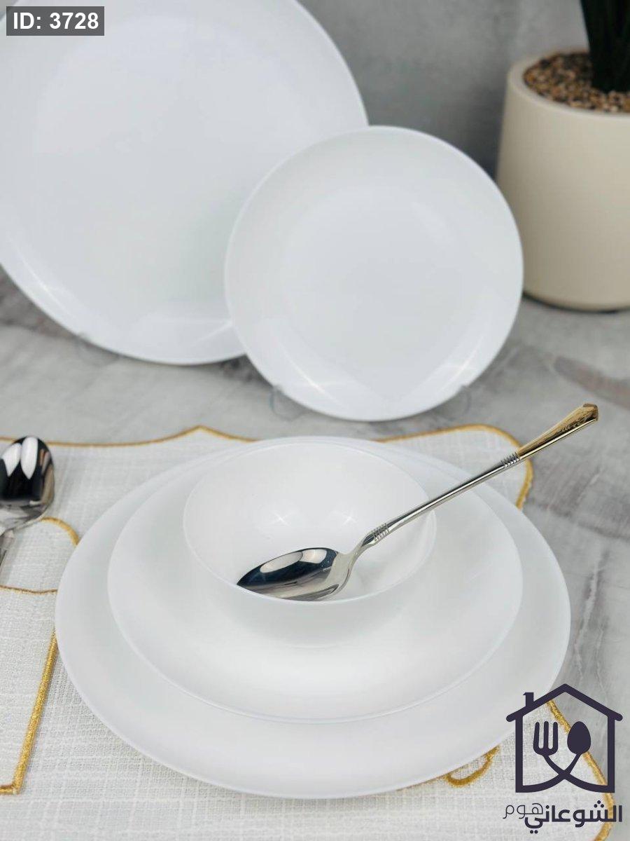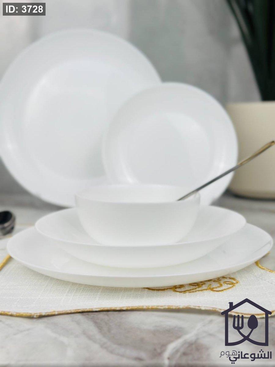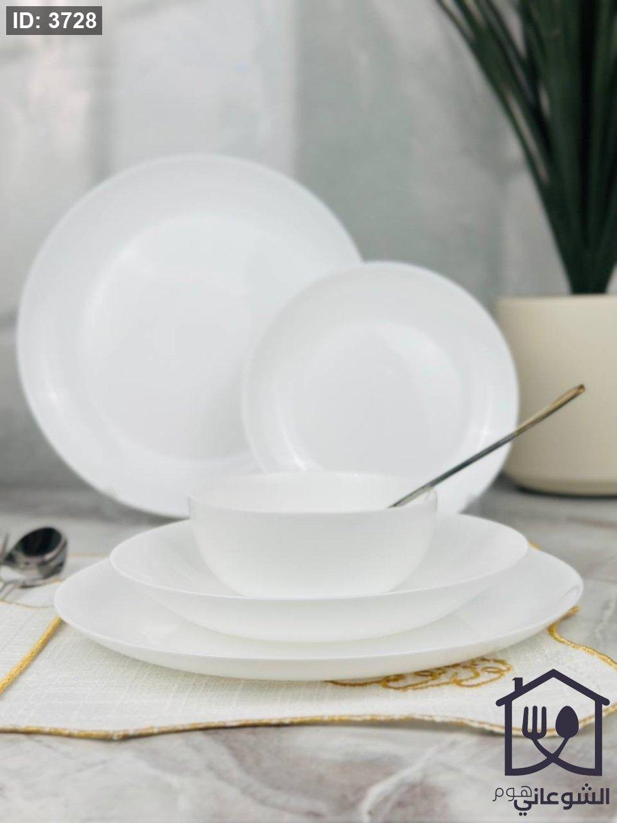 طقم صحون اوبال الشوعاني ابيض سادة 24 قطعة