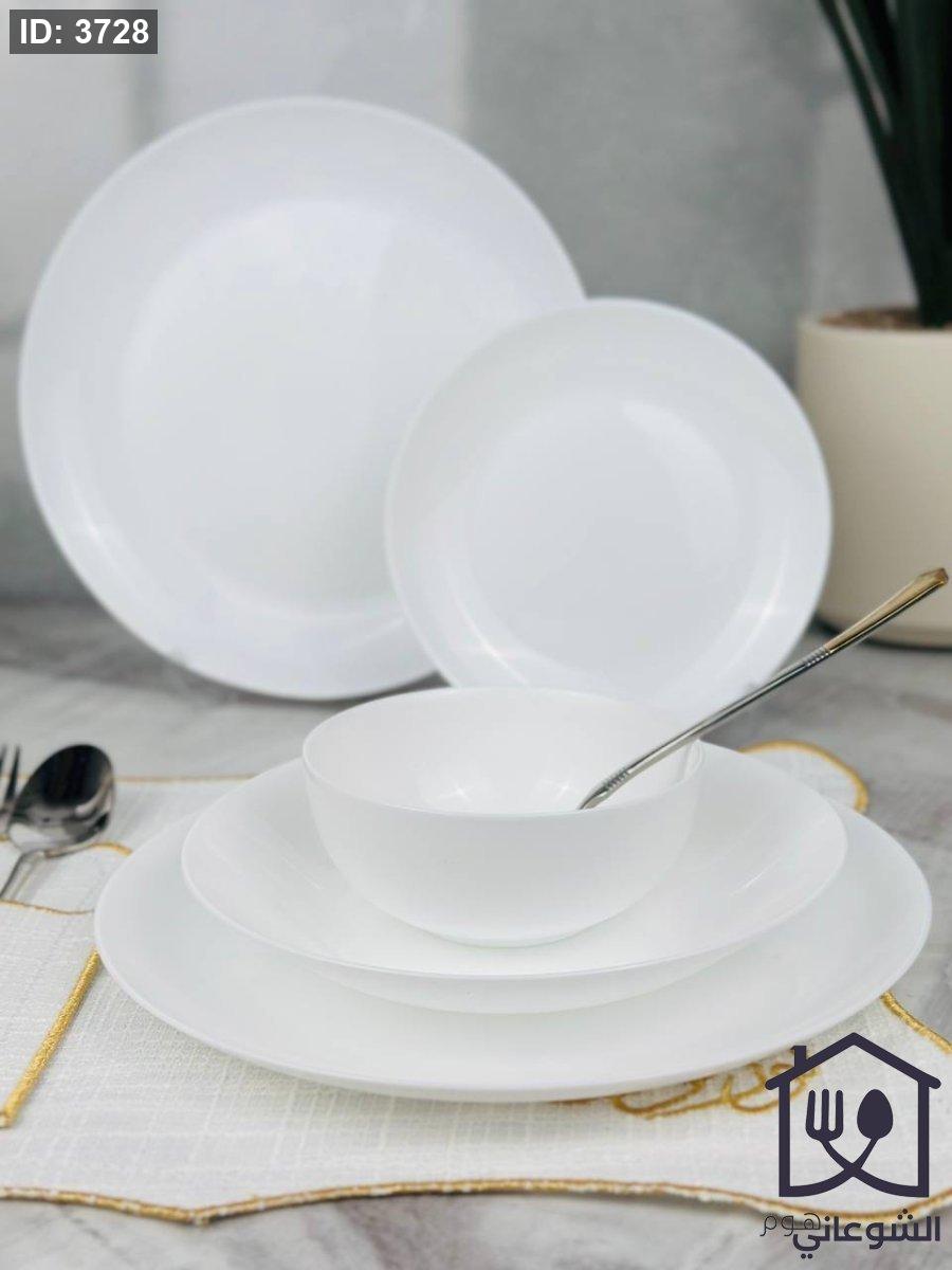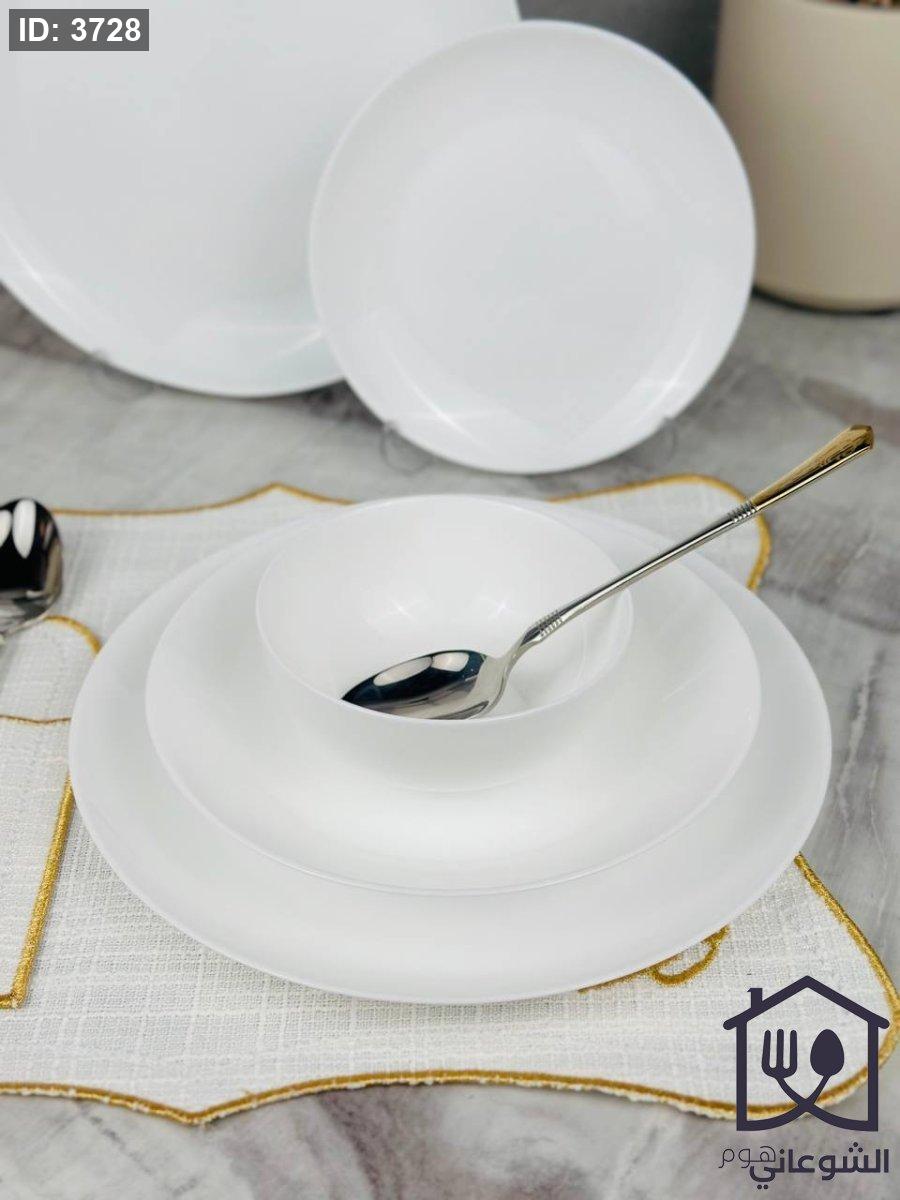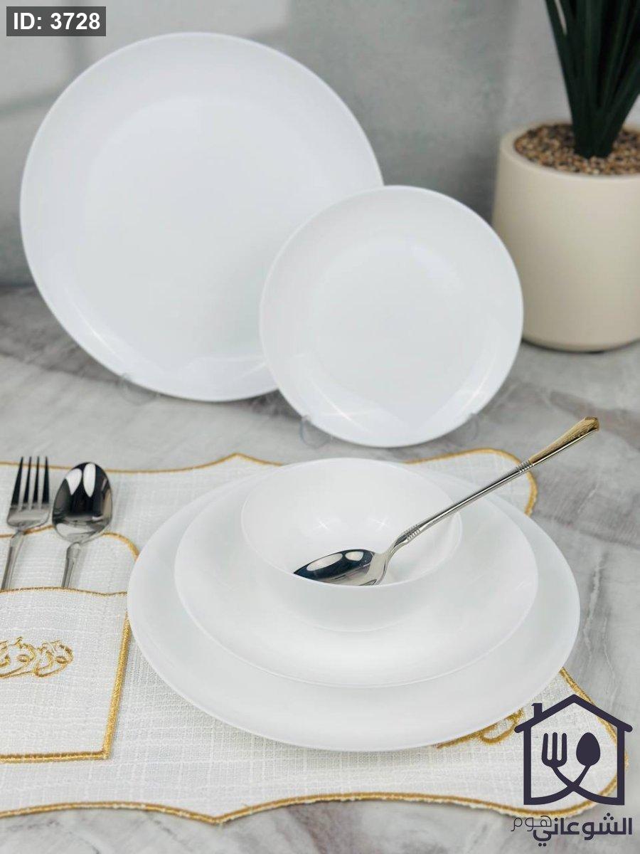 طقم صحون اوبال الشوعاني ابيض سادة 24 قطعة