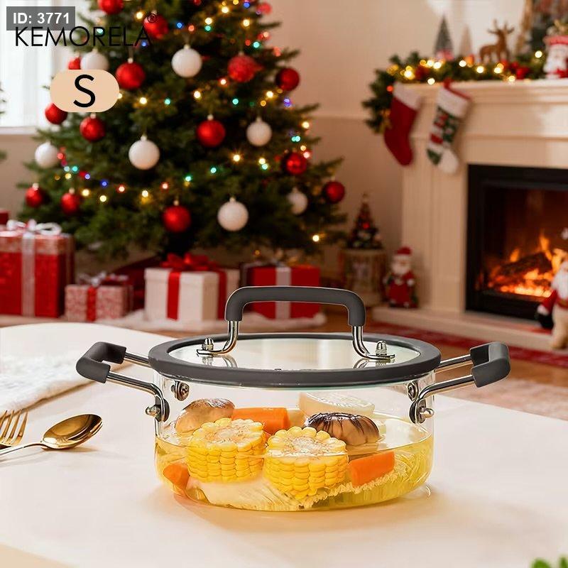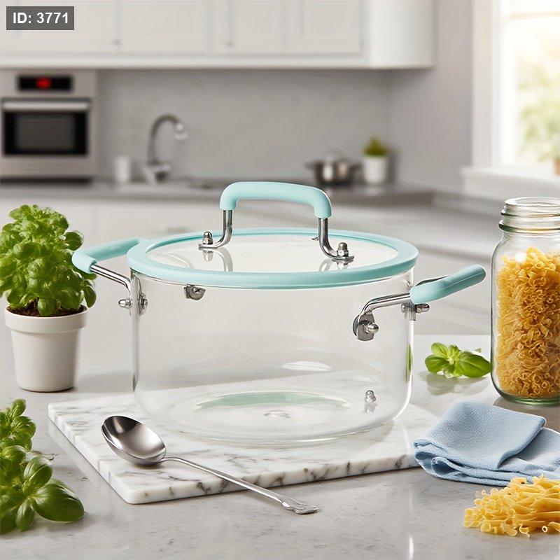 طنجرة زجاج حراري شفافة مصنوعة من زجاج بوروسيليكات عالي الجودة، تتحمل درجات الحرارة العالية وتناسب الطبخ اليومي بطريقة صحية وآمنة.