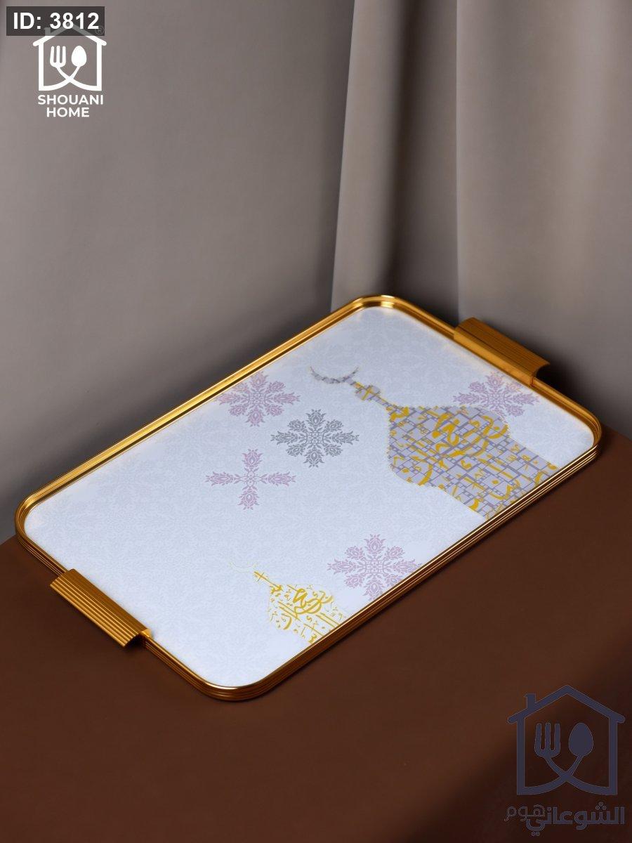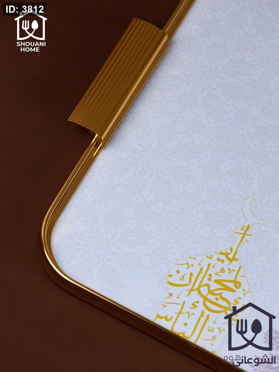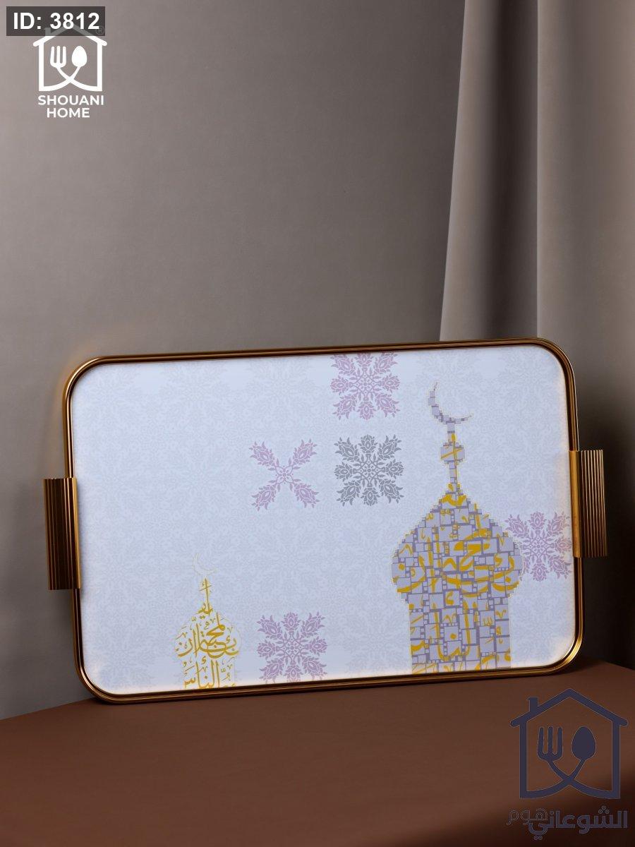 صينية تقديم اوف وايت اطار ذهبي مرسم شكل مسجد كتابة ( بالمحبة )