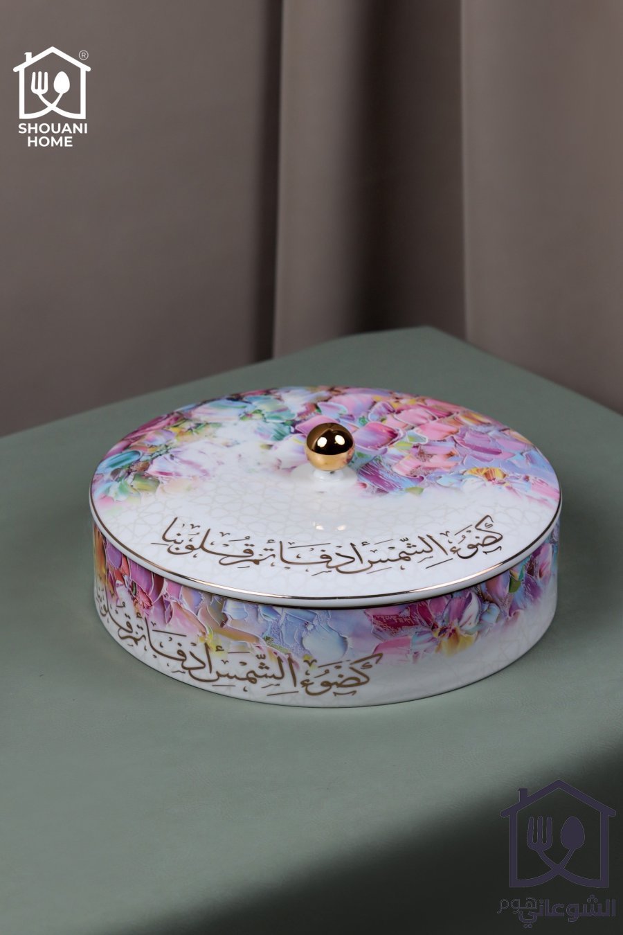 مضيفة اوف وايت موردة زهري اطار ذهبي كتابة { كَضَوْءِ الشَّمْسِ أَدْفَأْتُمْ قُلُوبَنا }