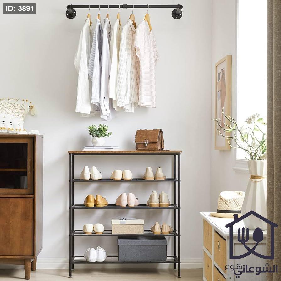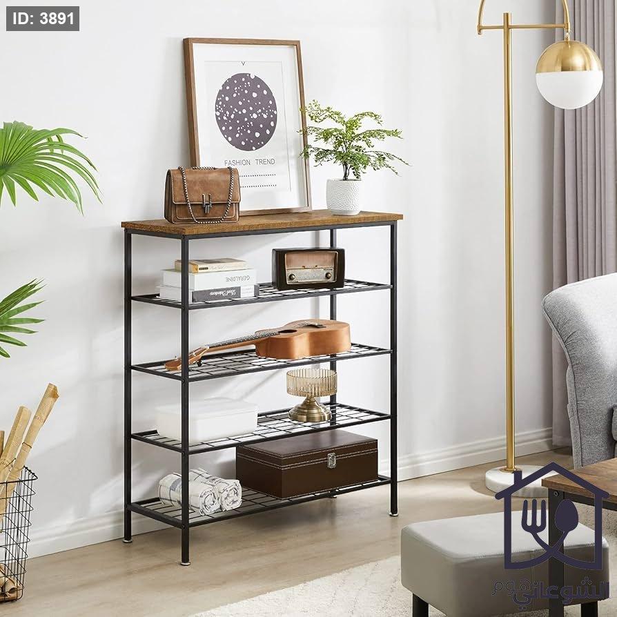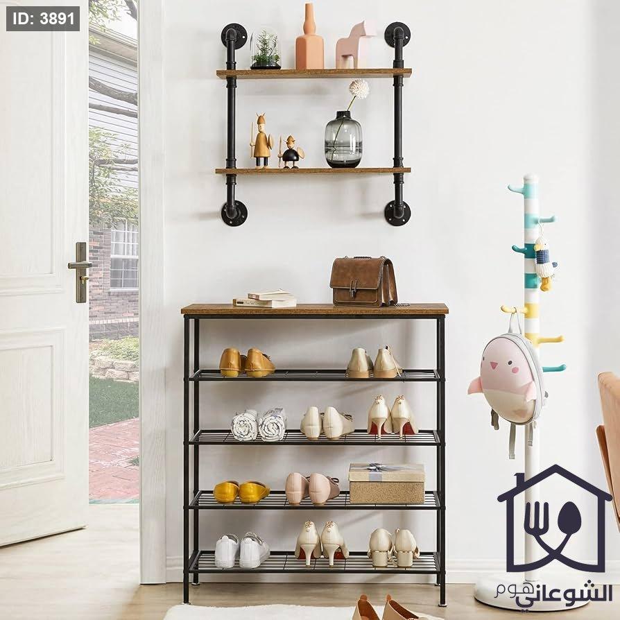 ستاند رفوف أحذية 4 طبقات معدن مع سطح خشبي