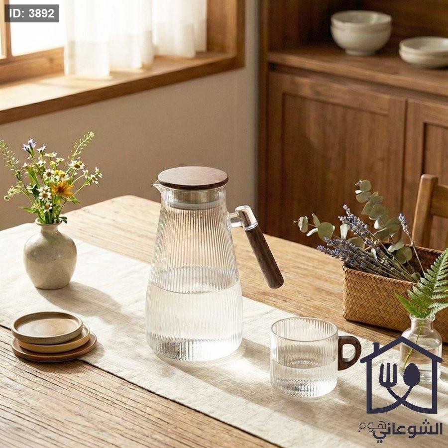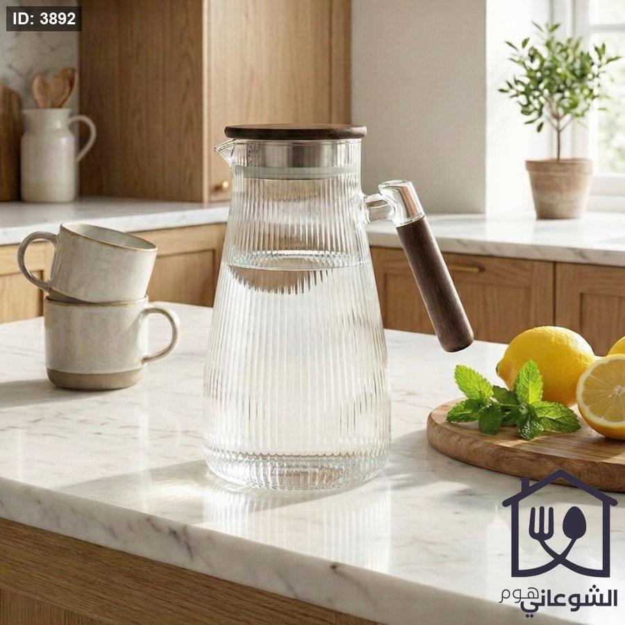 شاف ماء / عصير زجاج مع يد وغطاء خشب