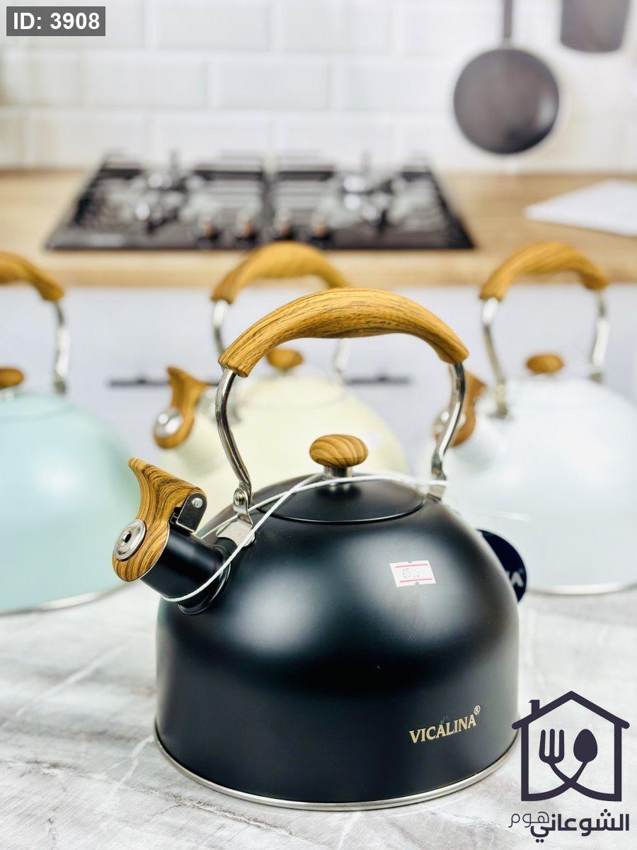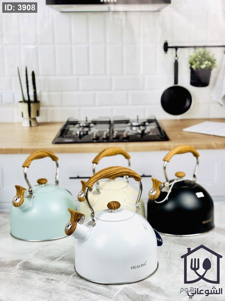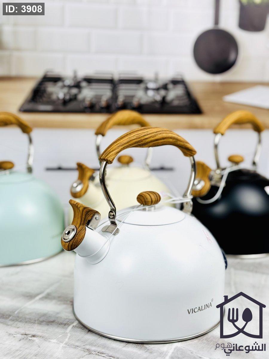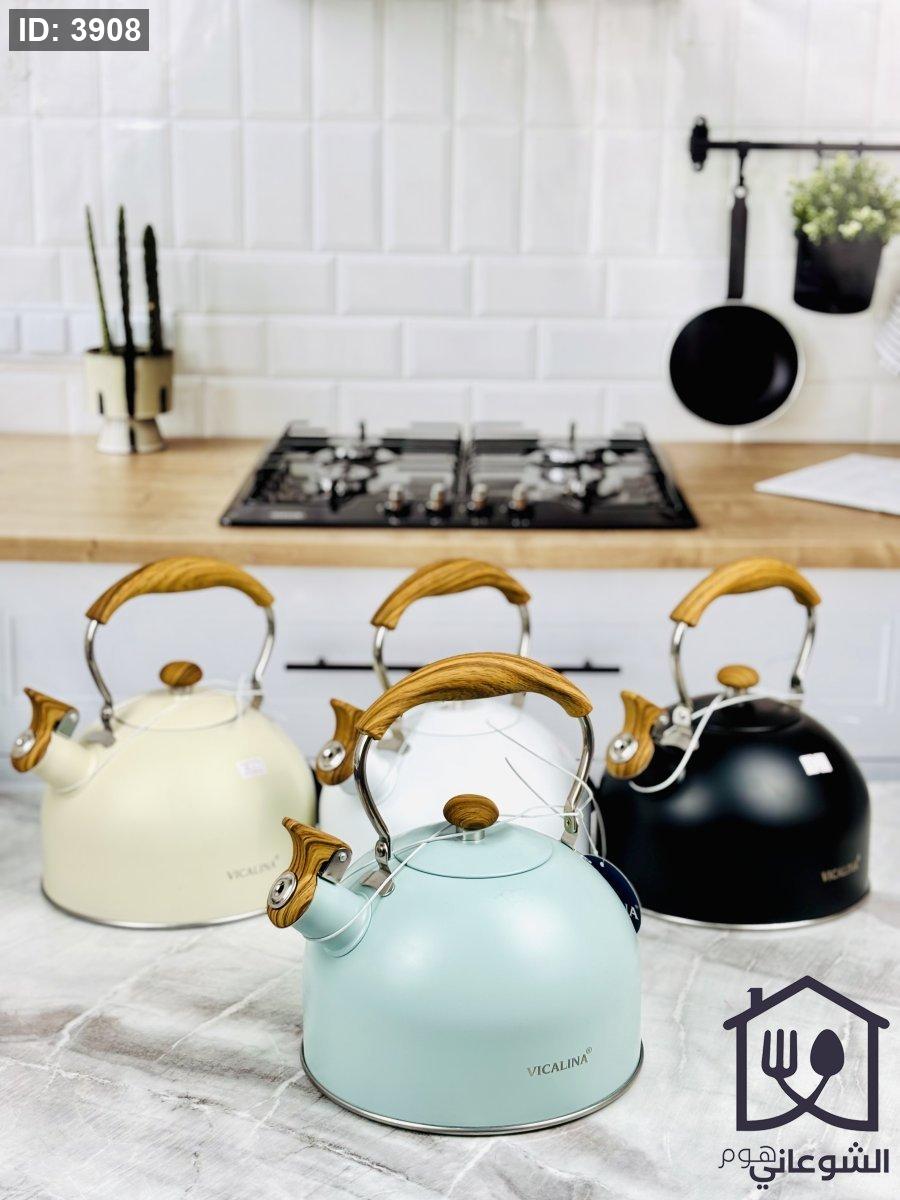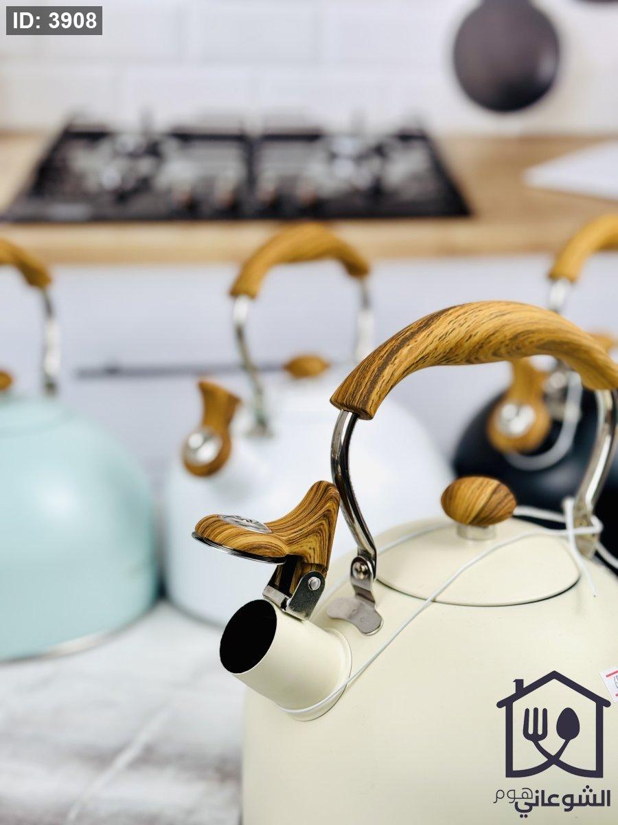 إبريق شاي ستانلس 1.7L مع يد وتسكيرة خشب بعدة ألوان
