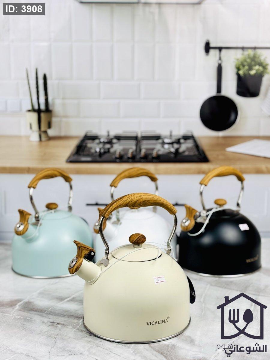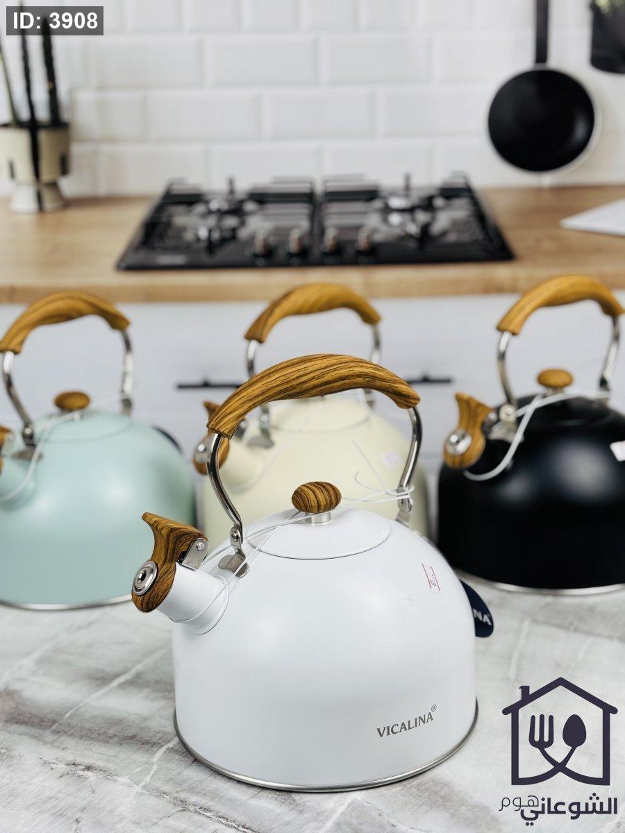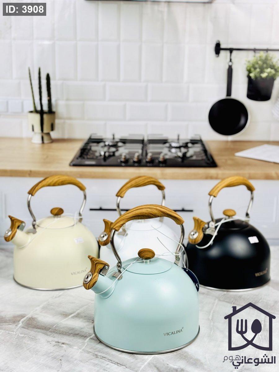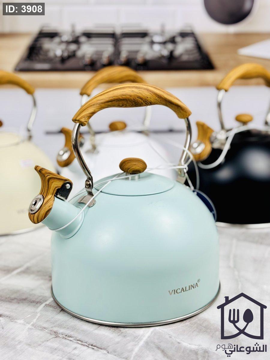 إبريق شاي ستانلس 1.7L مع يد وتسكيرة خشب بعدة ألوان