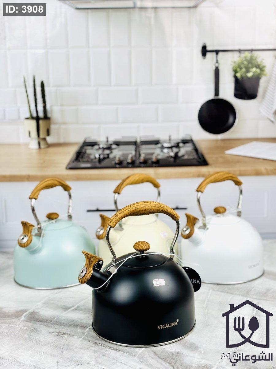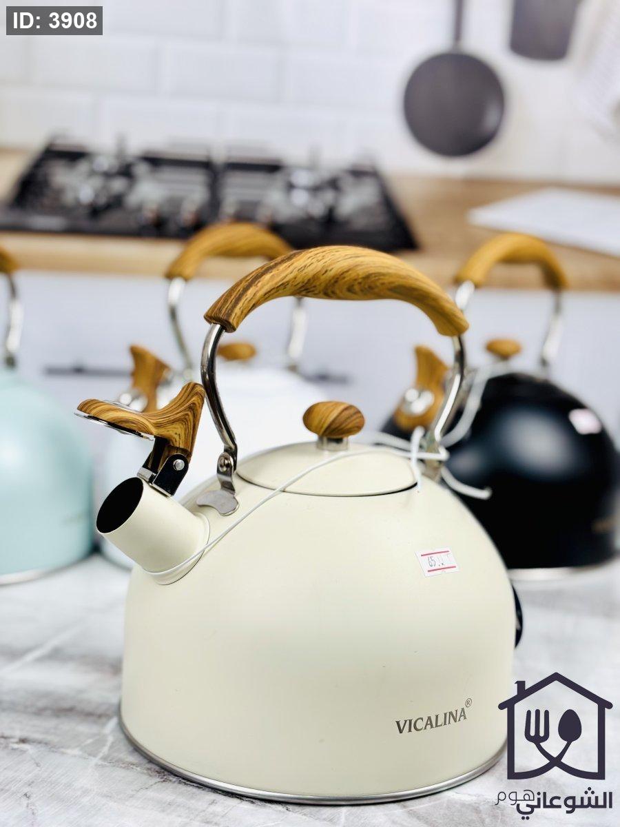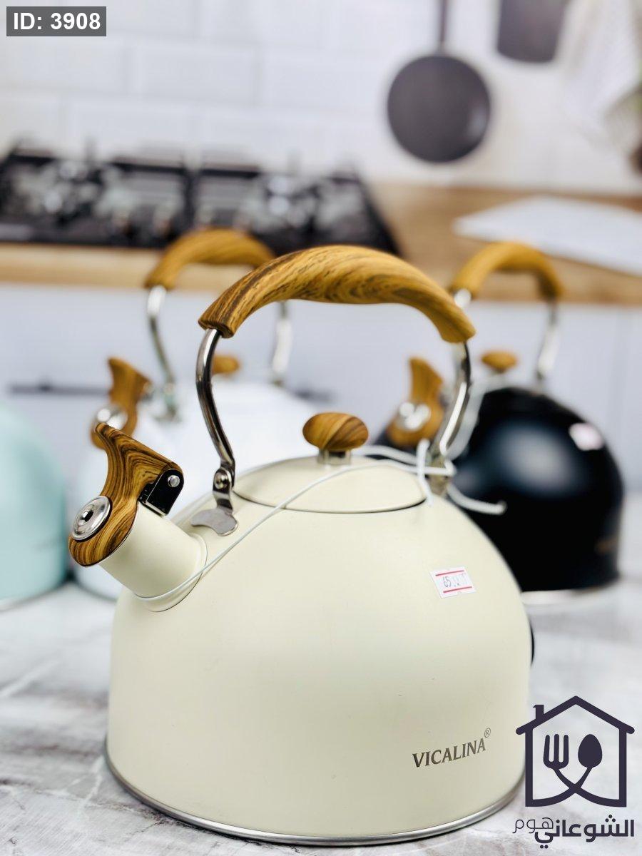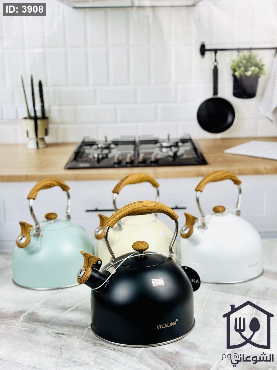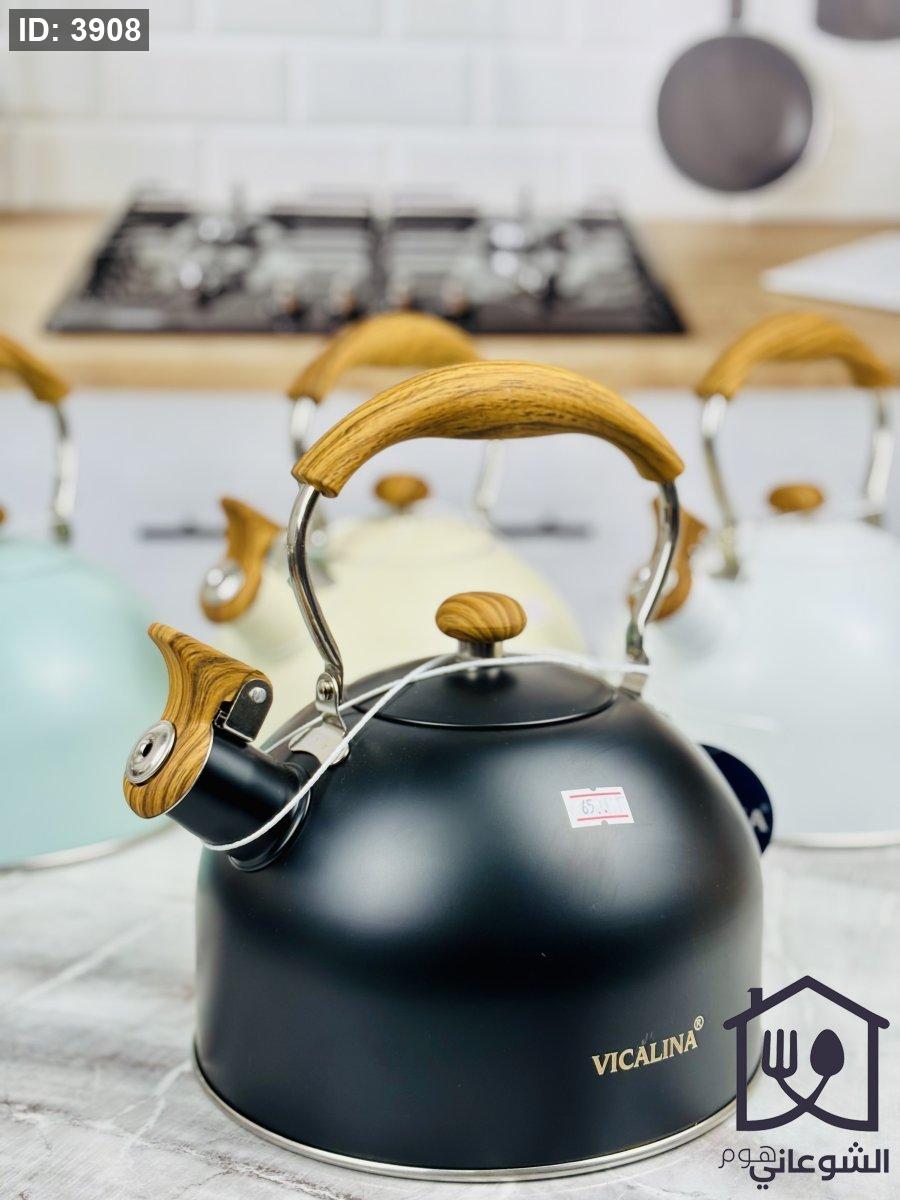 إبريق شاي ستانلس 1.7L مع يد وتسكيرة خشب بعدة ألوان