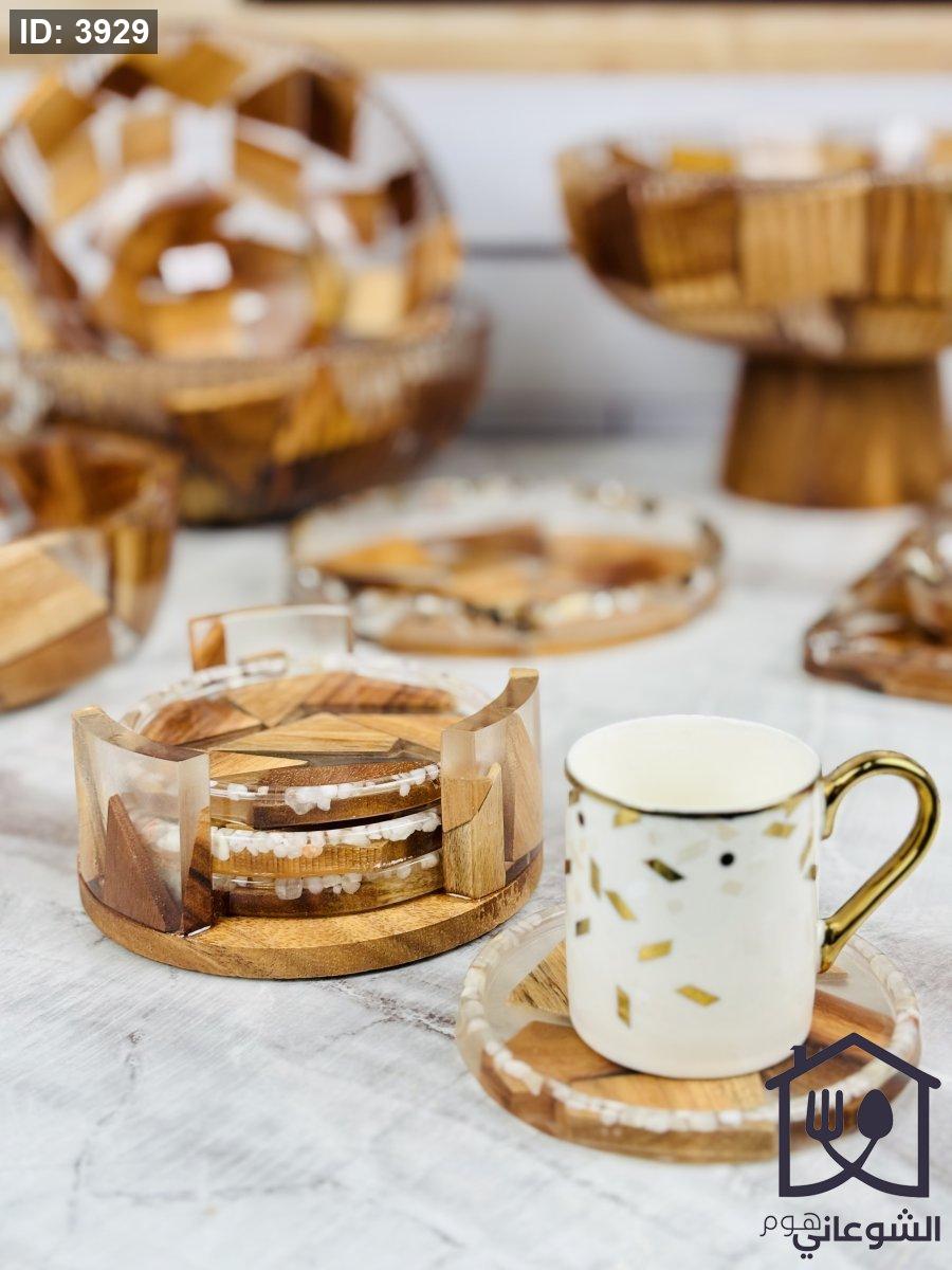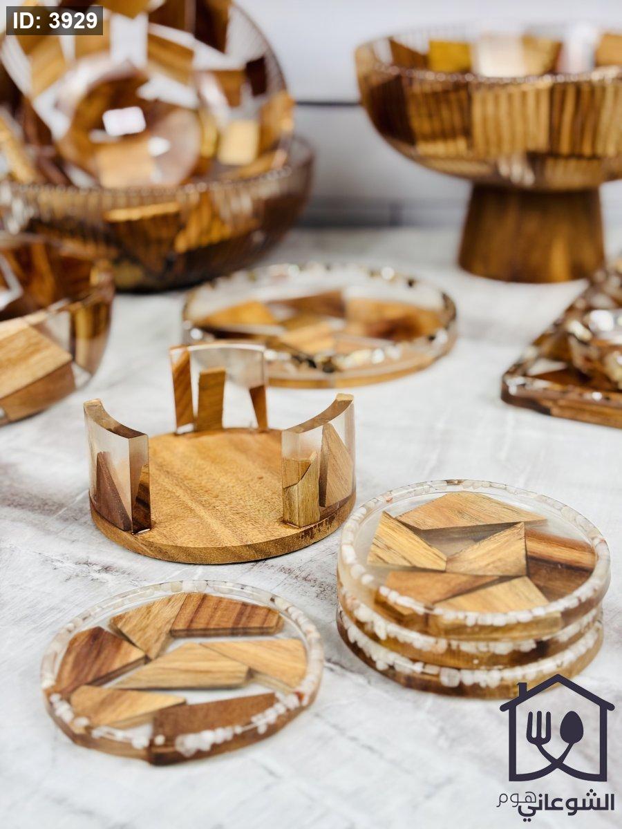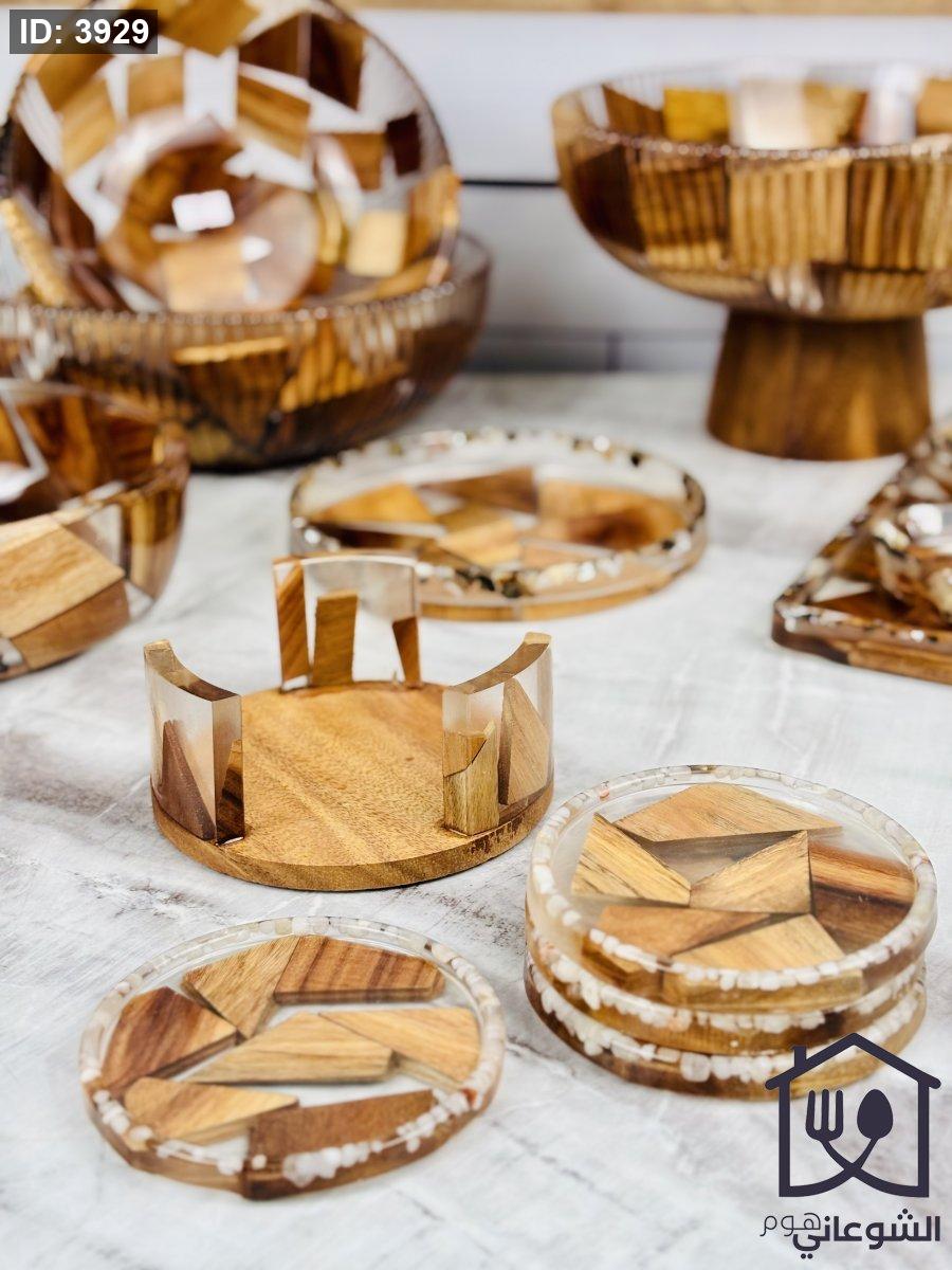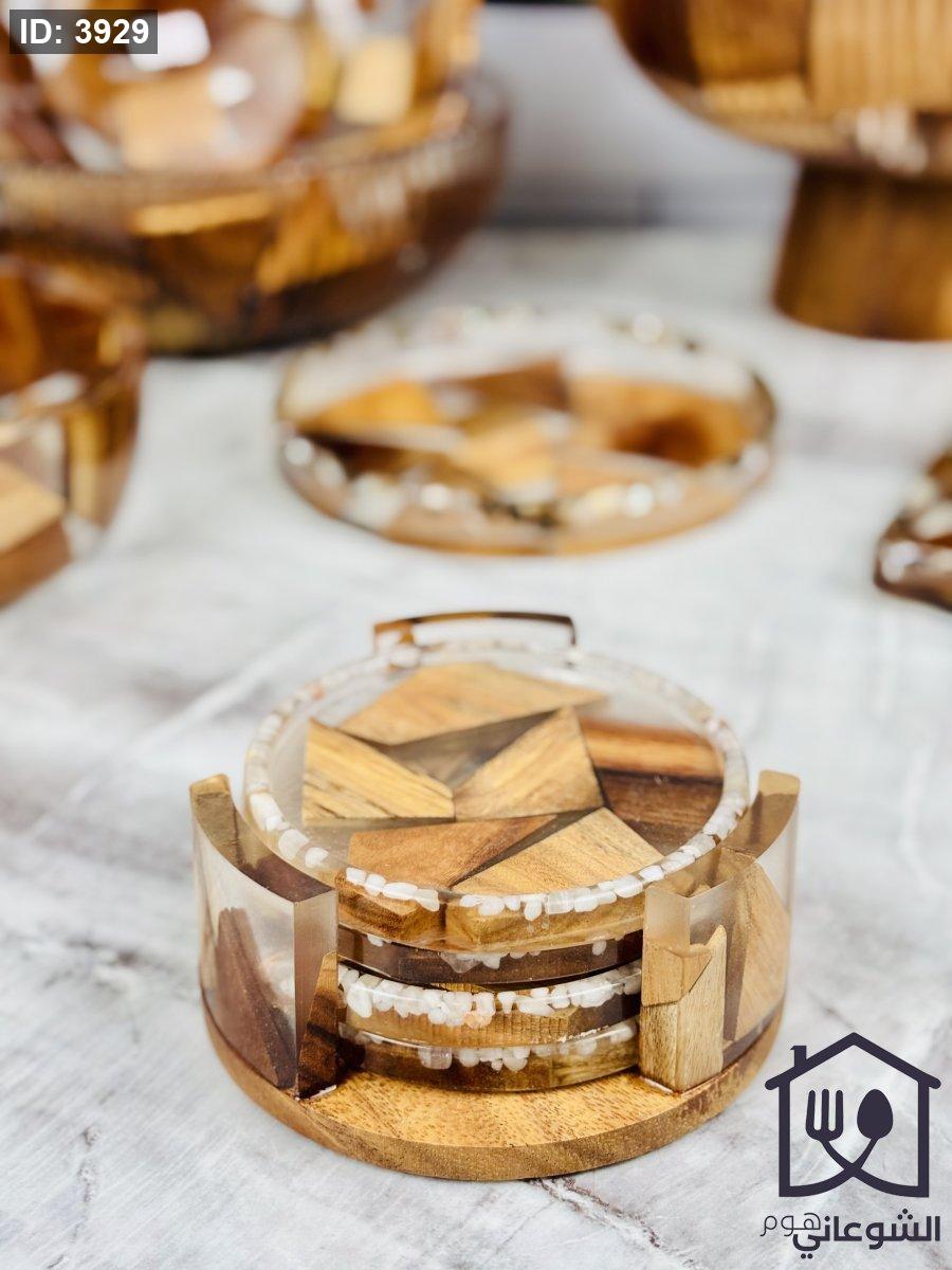 طقم كوسترات ريزن مع خشب بني غامق 4 قطع مع ستاند حجم وسط