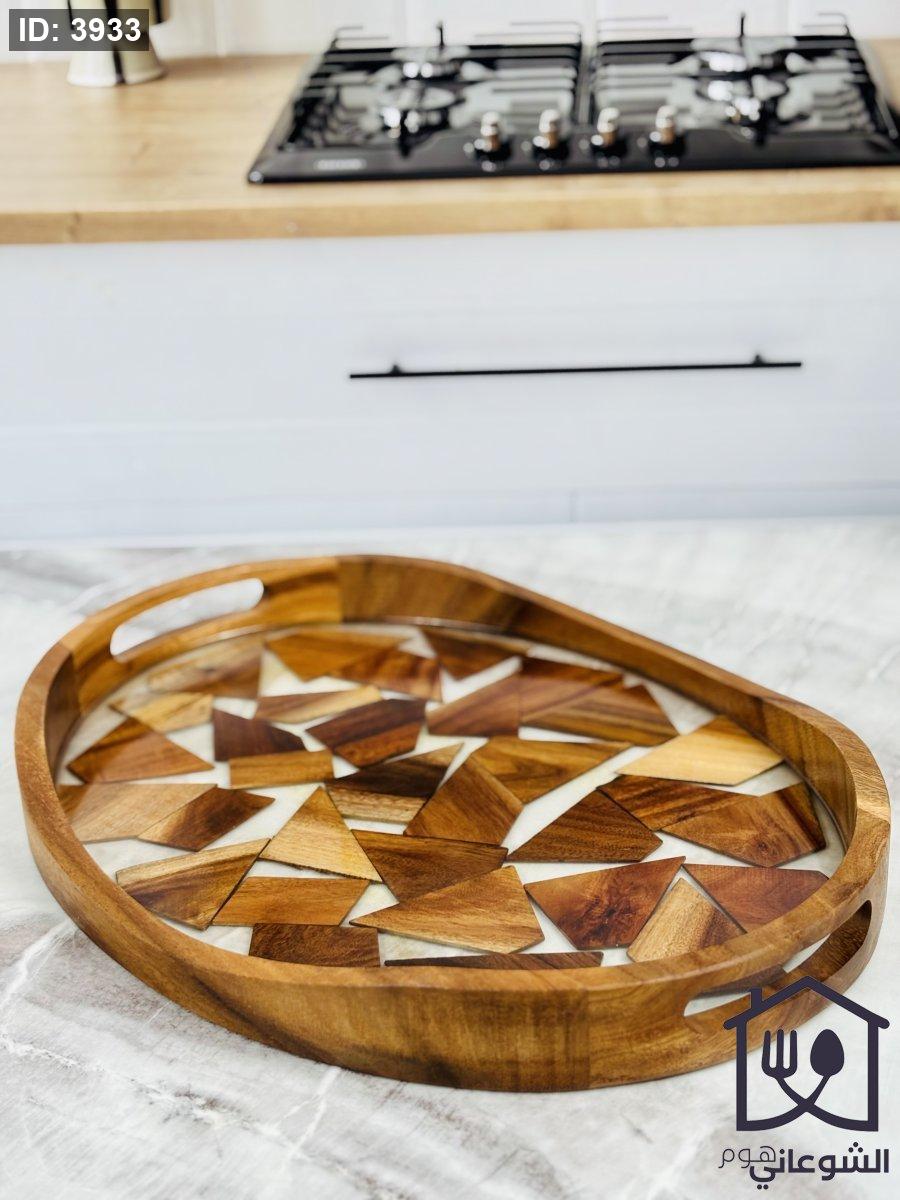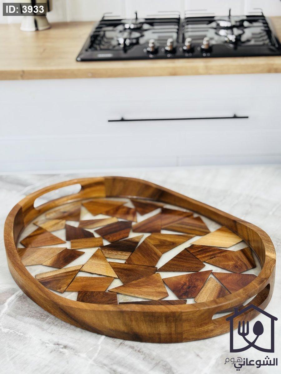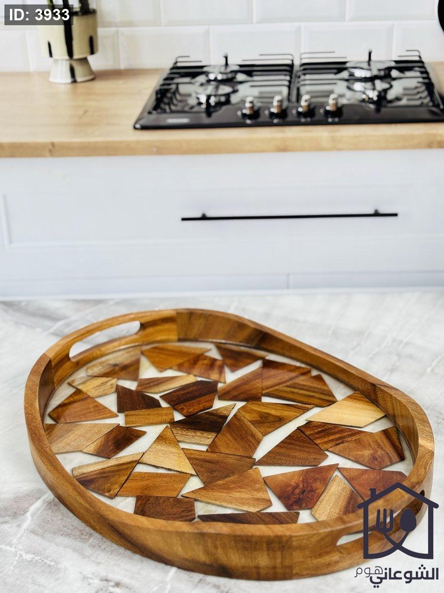 صينية تقديم ريزن مع خشب بني غامق 45CM