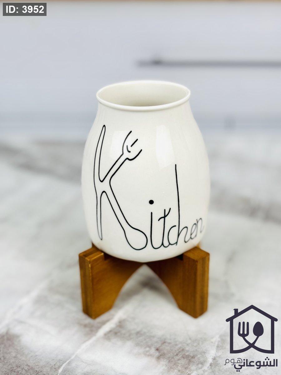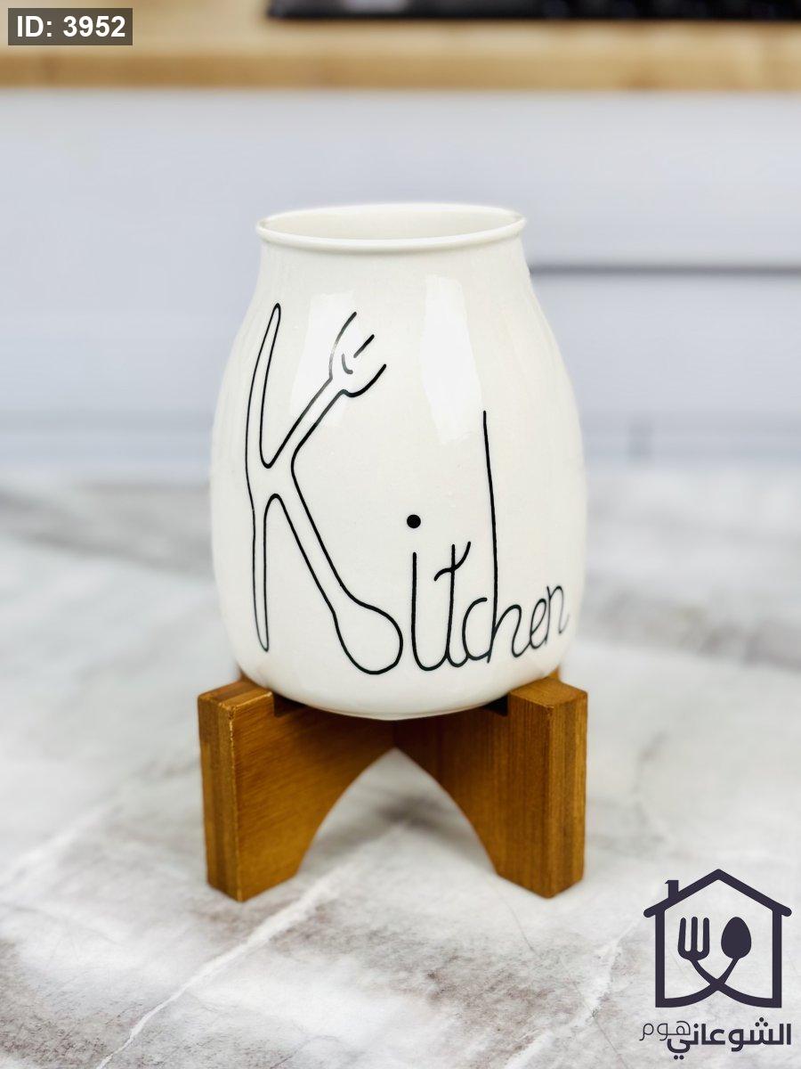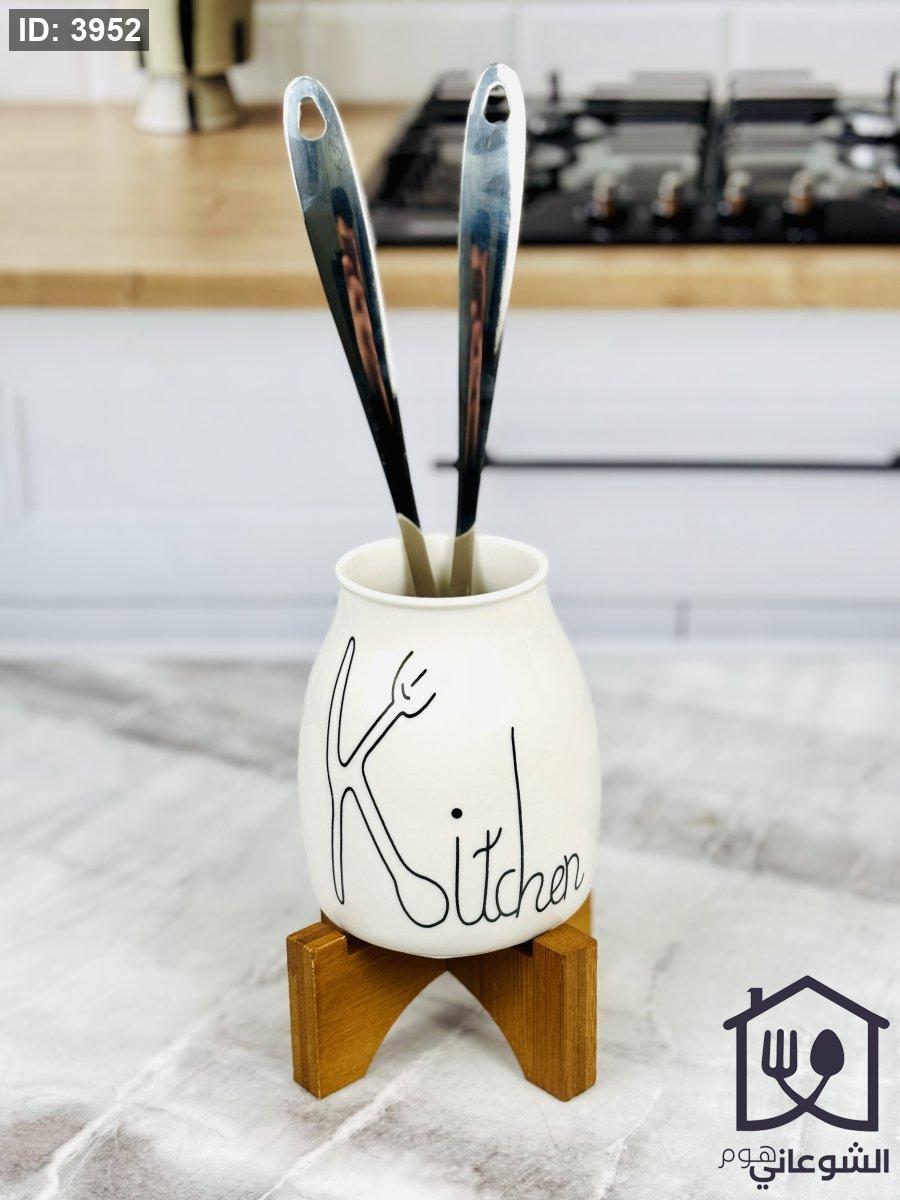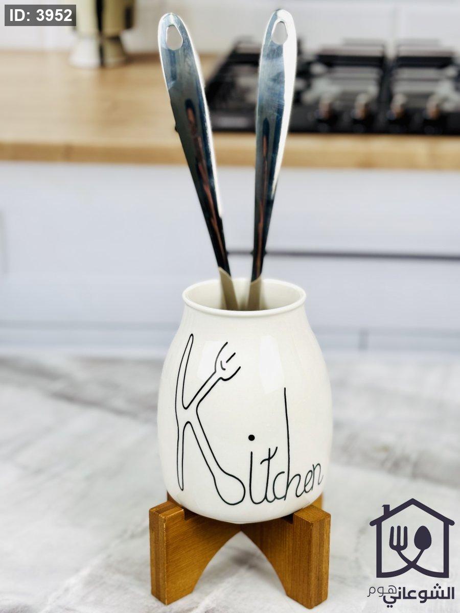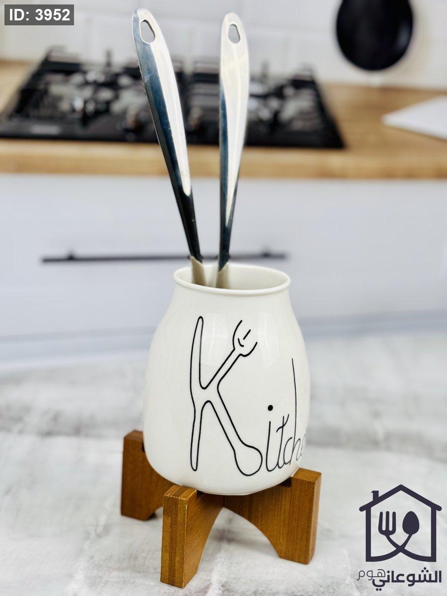 ستاند مغارف بورسلان ابيض مع قاعدة خشب