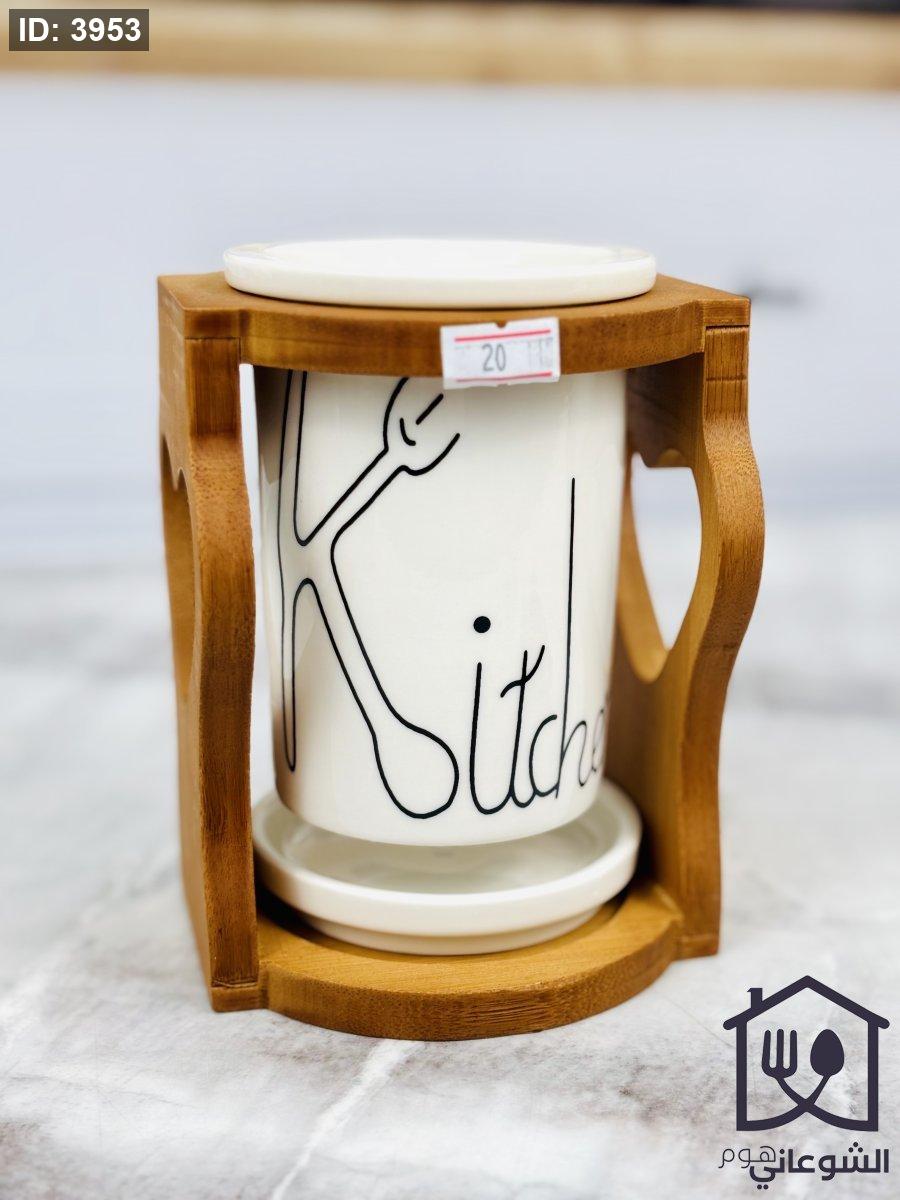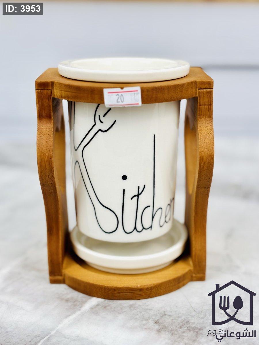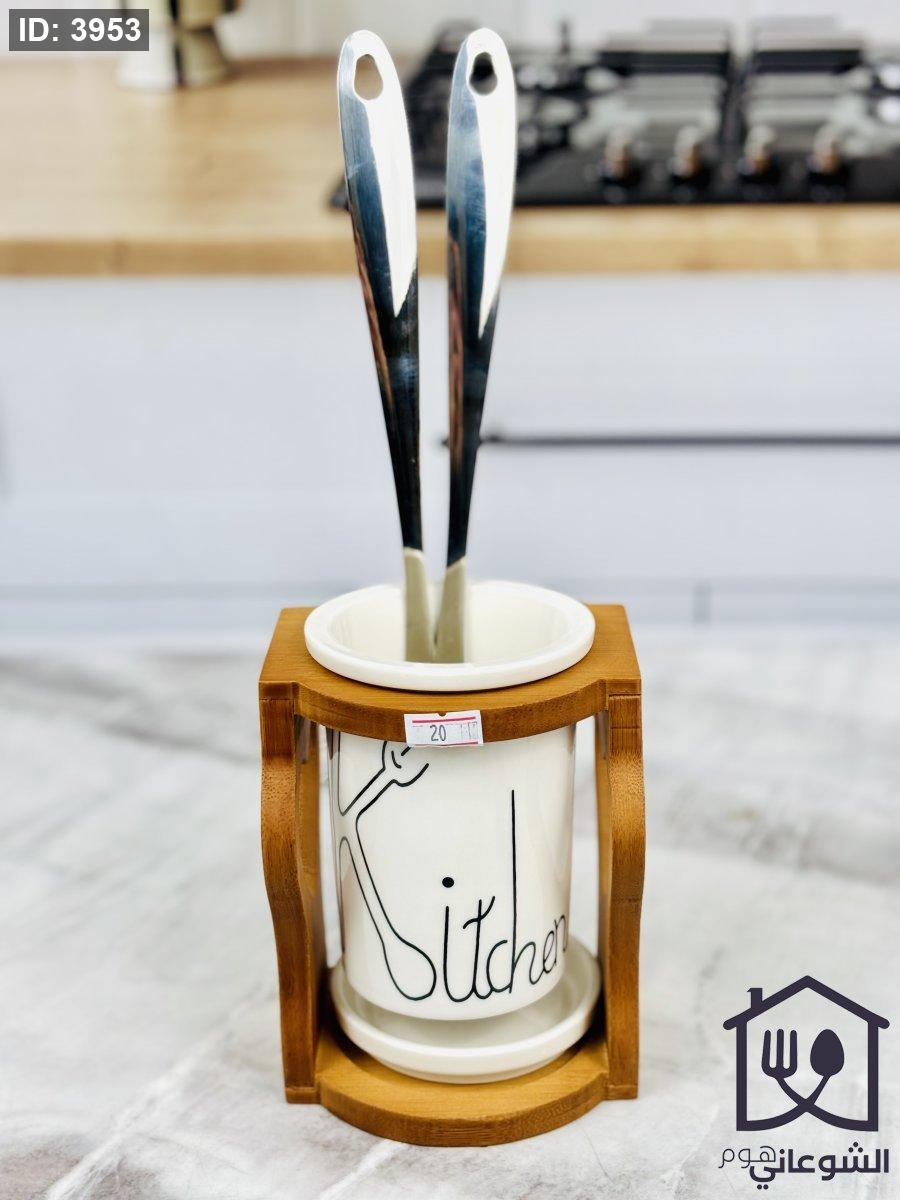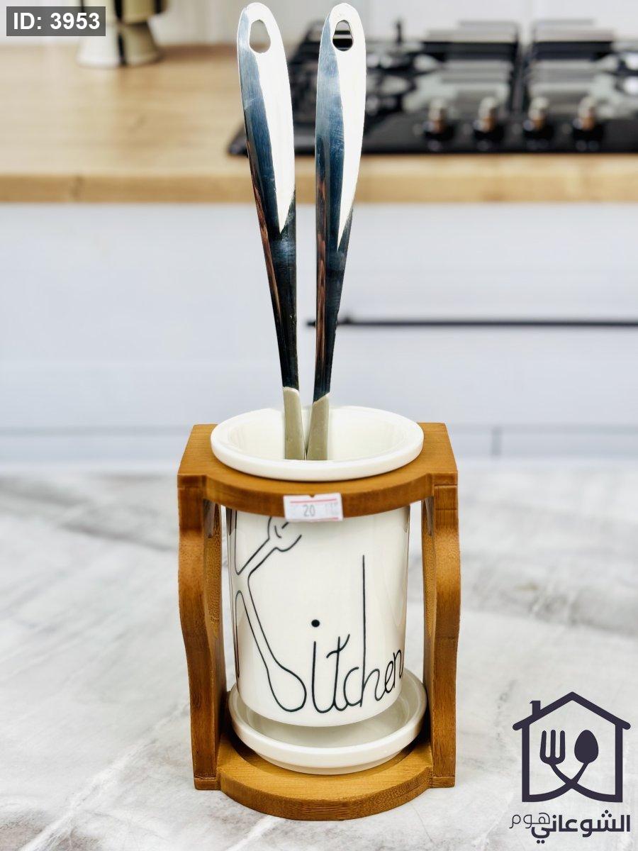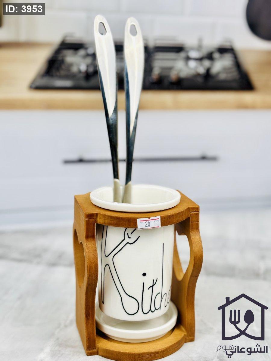 ستاند مغارف بورسلان ابيض مع قاعدة خشب