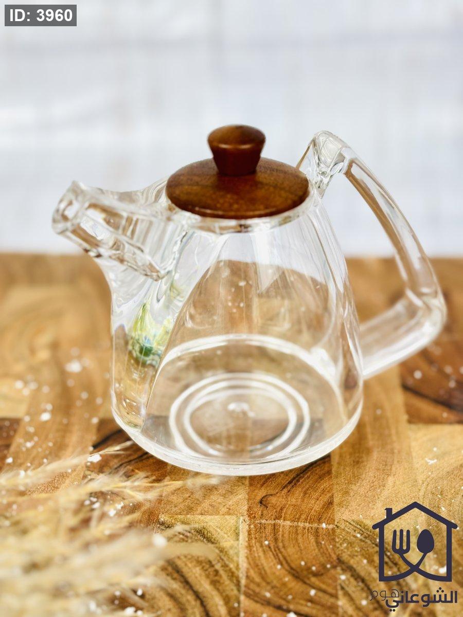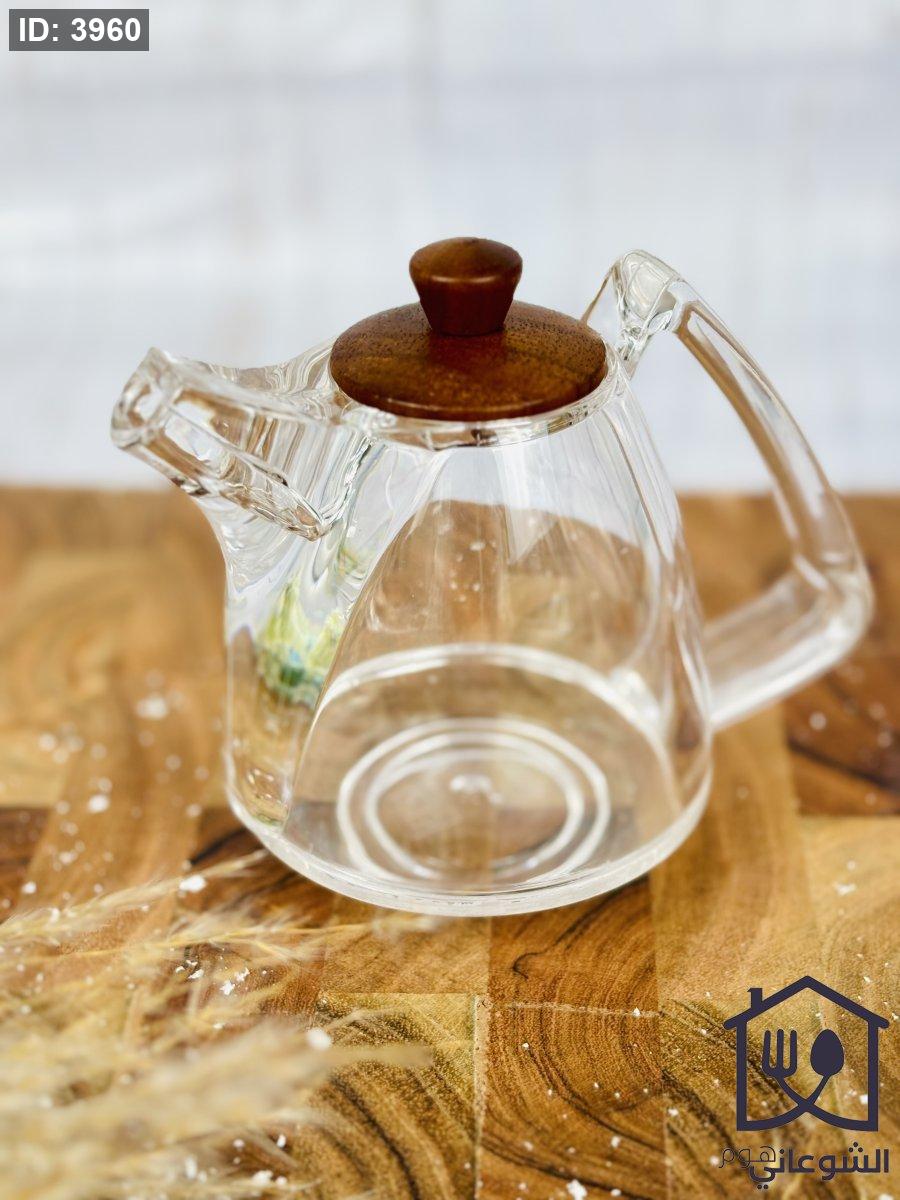 إبريق زيت اكروليك شفاف مع غطاء خشب