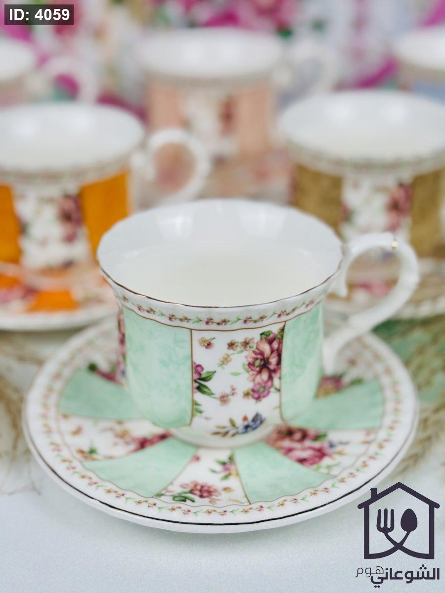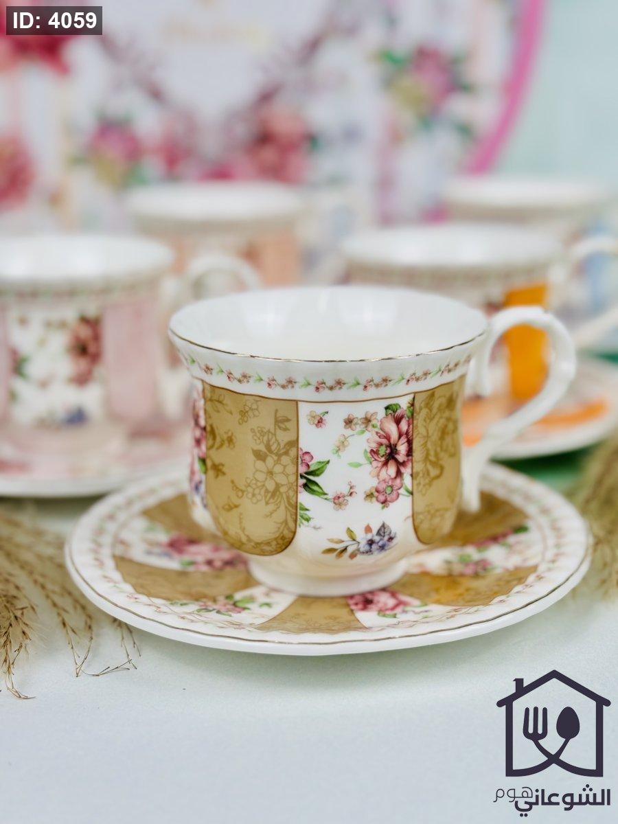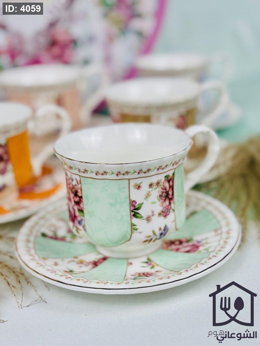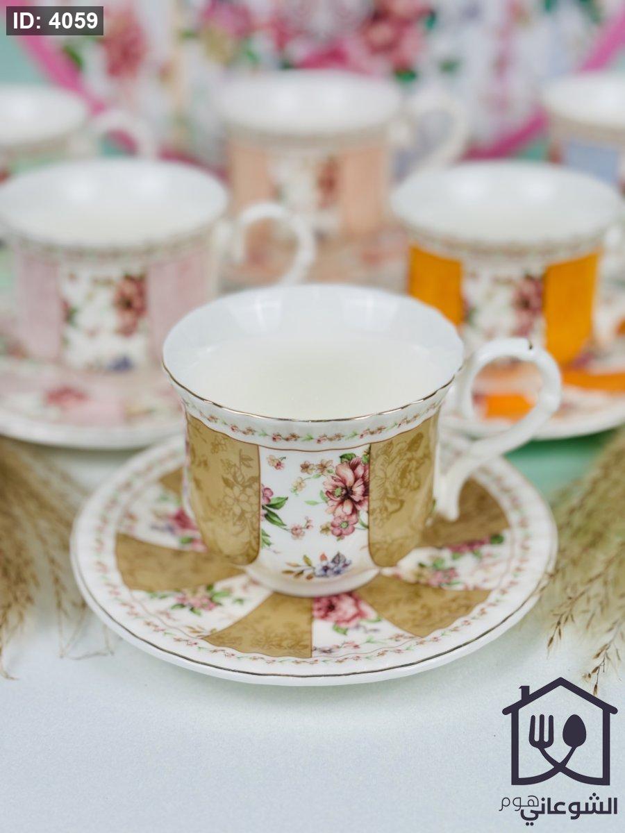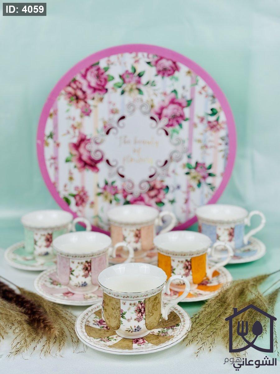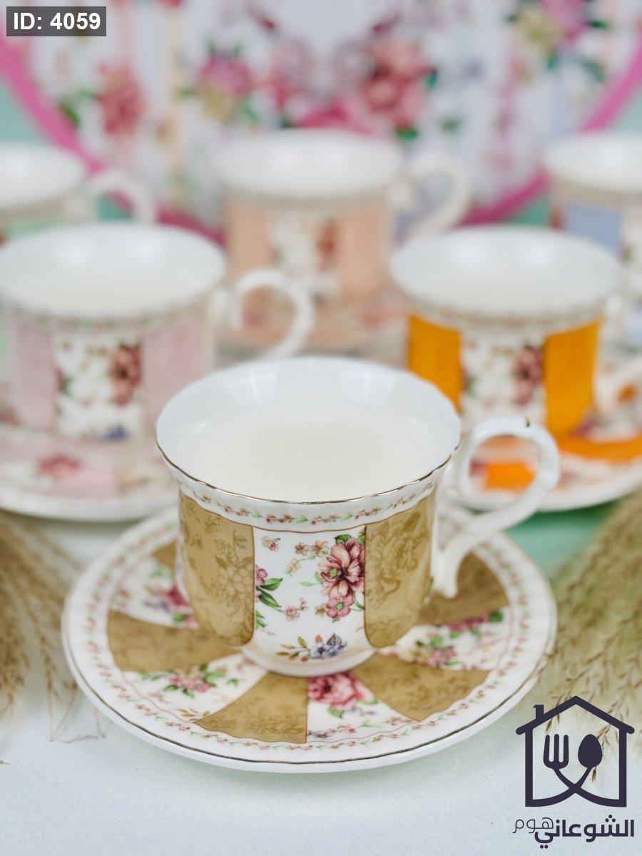 مج بورسلان مذهب مورد عدة ألوان كبير مع صحن