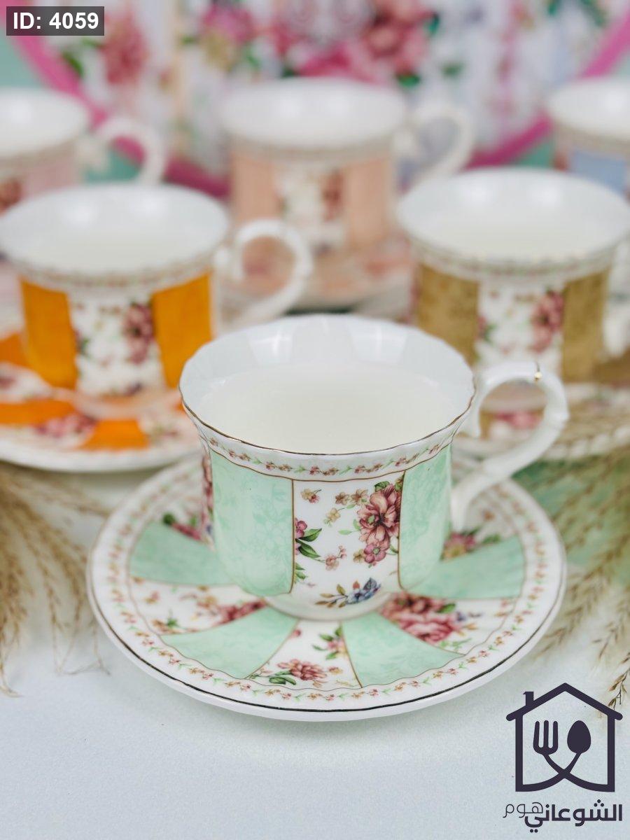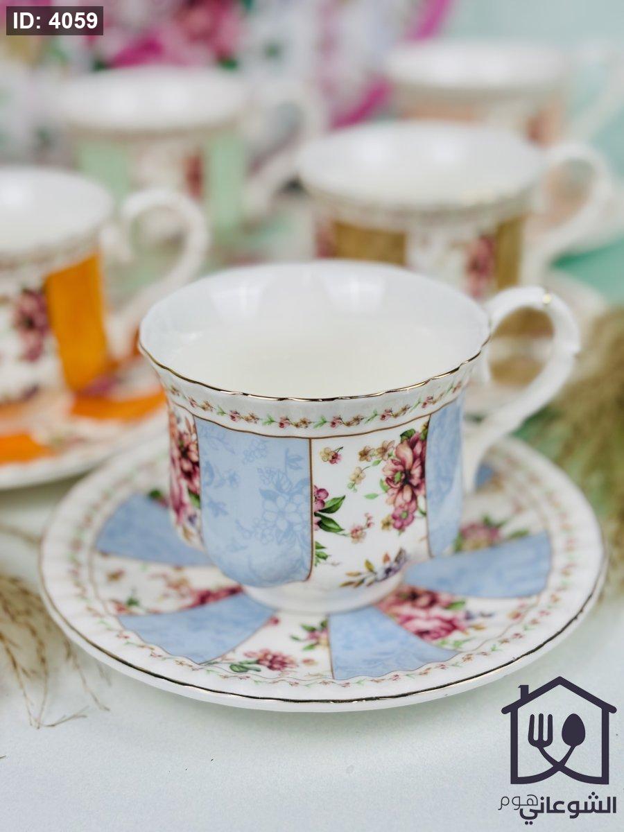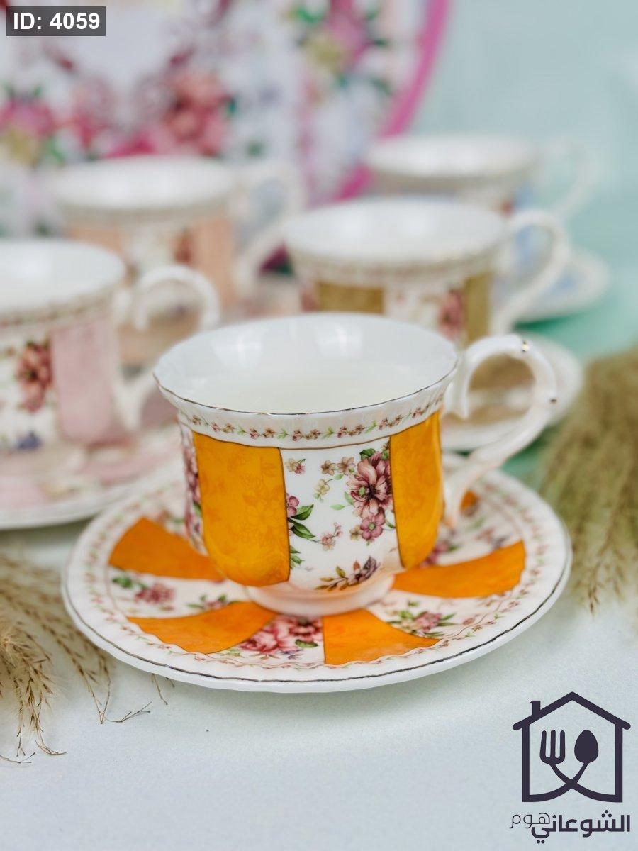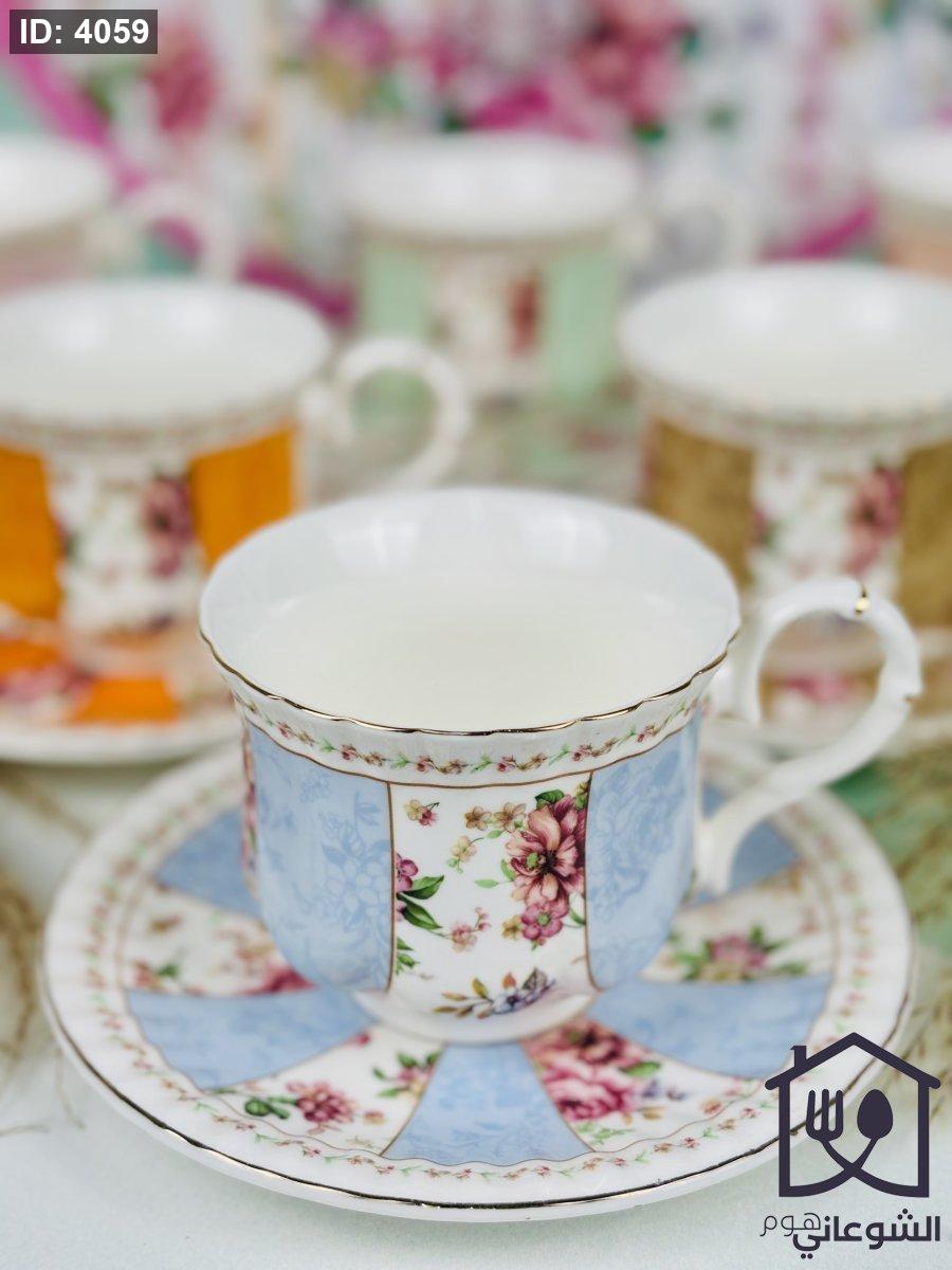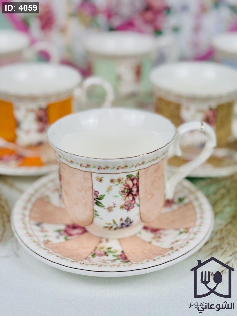 مج بورسلان مذهب مورد عدة ألوان كبير مع صحن